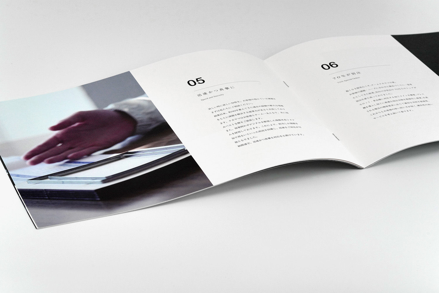 1937年創業。約1世紀にわたり世界一の品質でトムソン刃を製造し続けてこられた、株式会社ナカヤマ様の会社パンフレット。表紙に据えられた銀に光輝くロゴマークによって、一瞬にして世界観に引き込まれます。美しい写真と研ぎ澄まされた言葉の一つ一つがイズムを体現し、正に会社の分身体の様な一冊となるようデザインしました。
