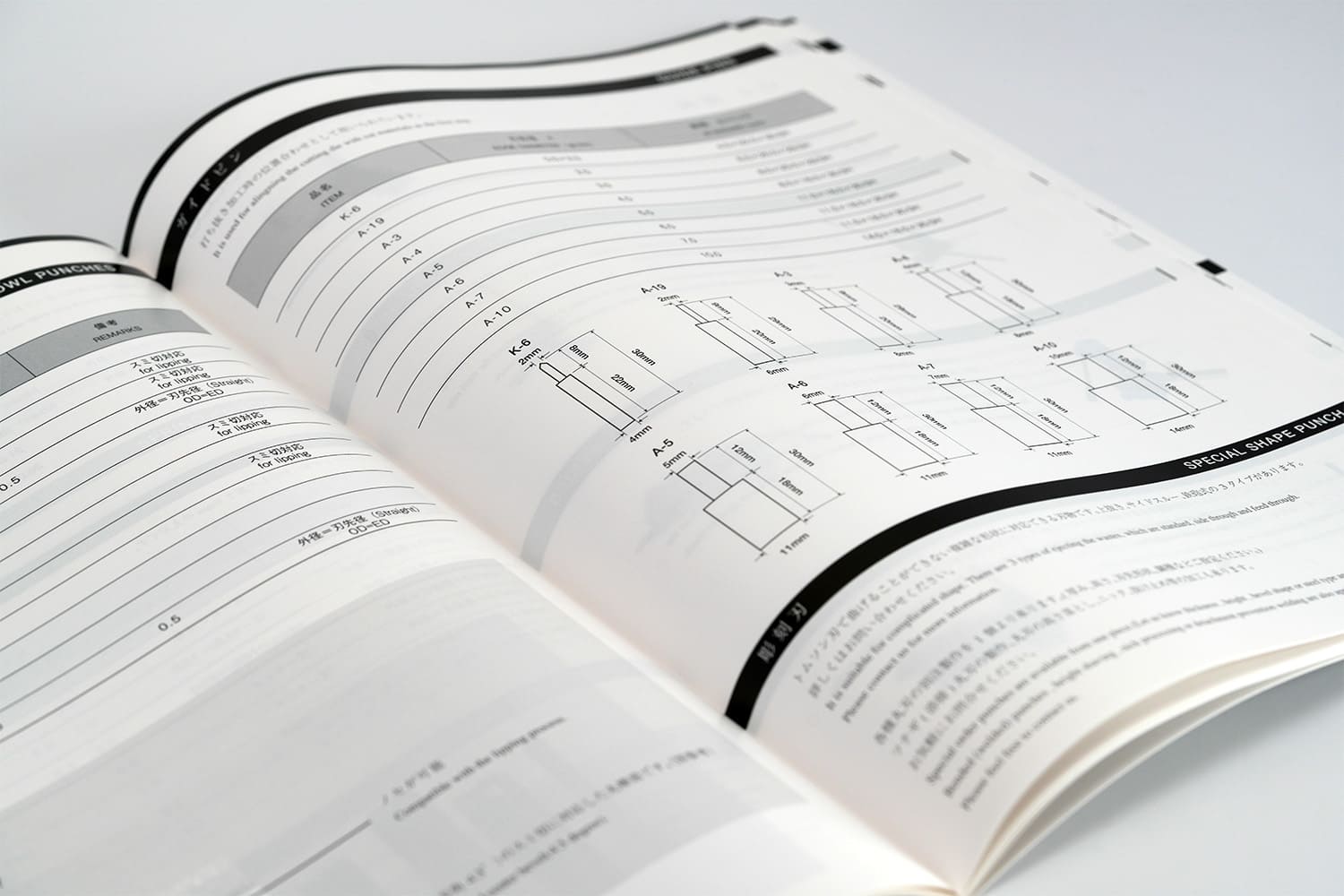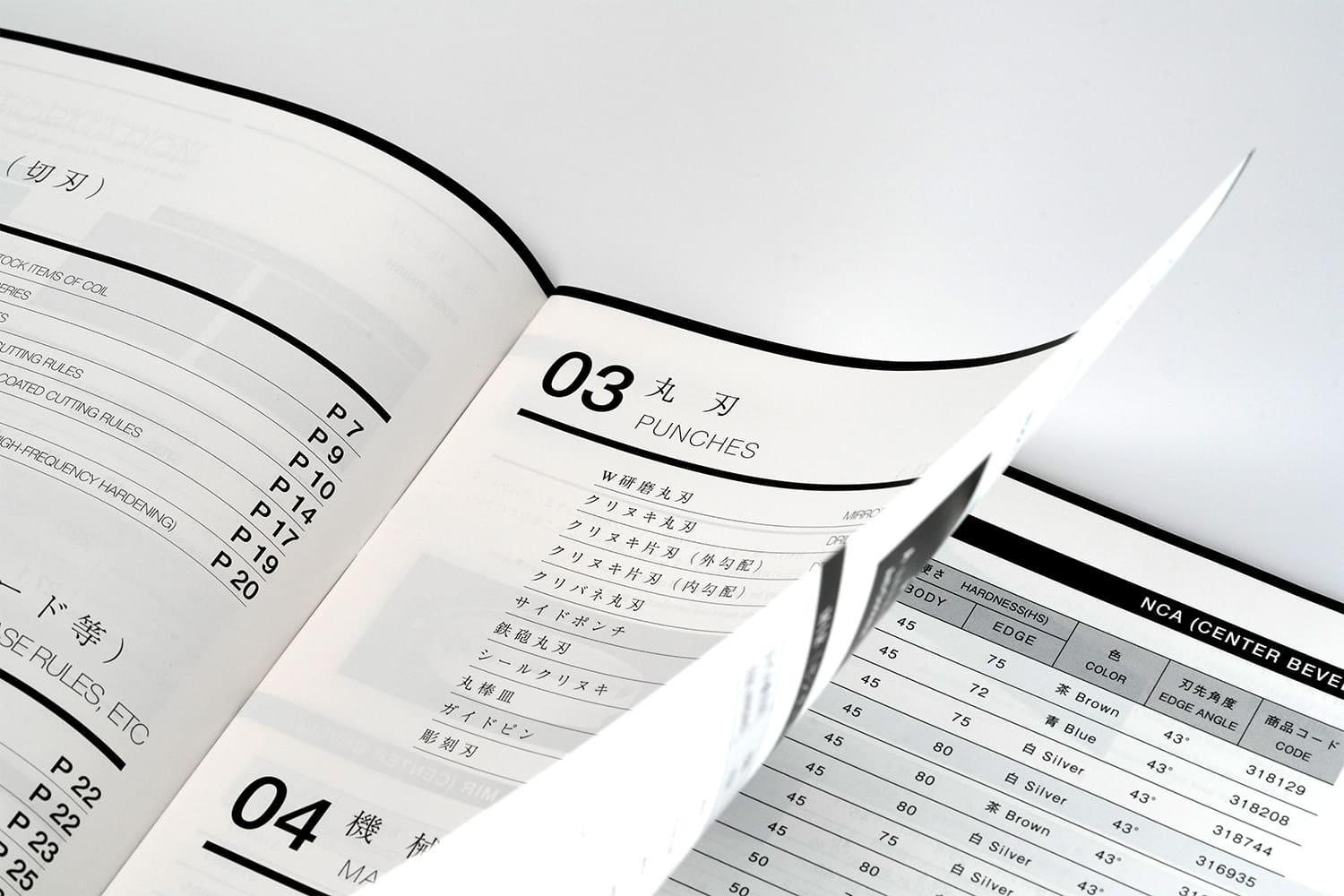 1937年創業。約1世紀にわたり世界一の品質でトムソン刃を製造し続けてこられた、株式会社ナカヤマ様の製品カタログ。ラインの太さ、テキストの大きさ、余白のバランス、ひとつひとつのあしらい、細部に至るまで徹底してこだわり抜き、只々製品を羅列するだけの一般的な製品カタログとは一線を画す美しいデザインに仕上がりました。また随所にイメージカットを配置することで、製品だけでなく世界観にも浸ることのできる一冊。