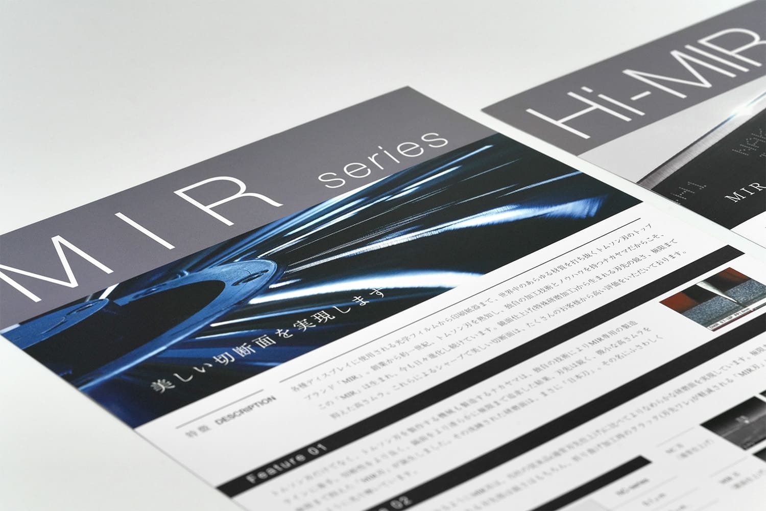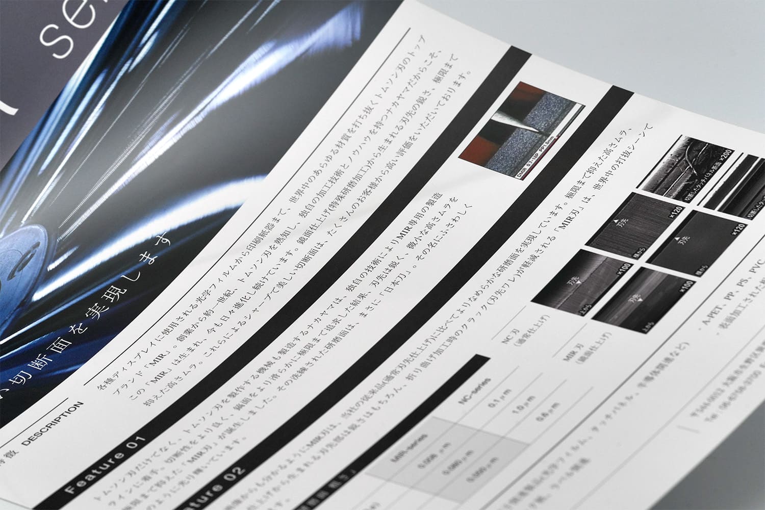 紙質さえも世界観の一部。製造業の製品紹介リーフレットデザイン。