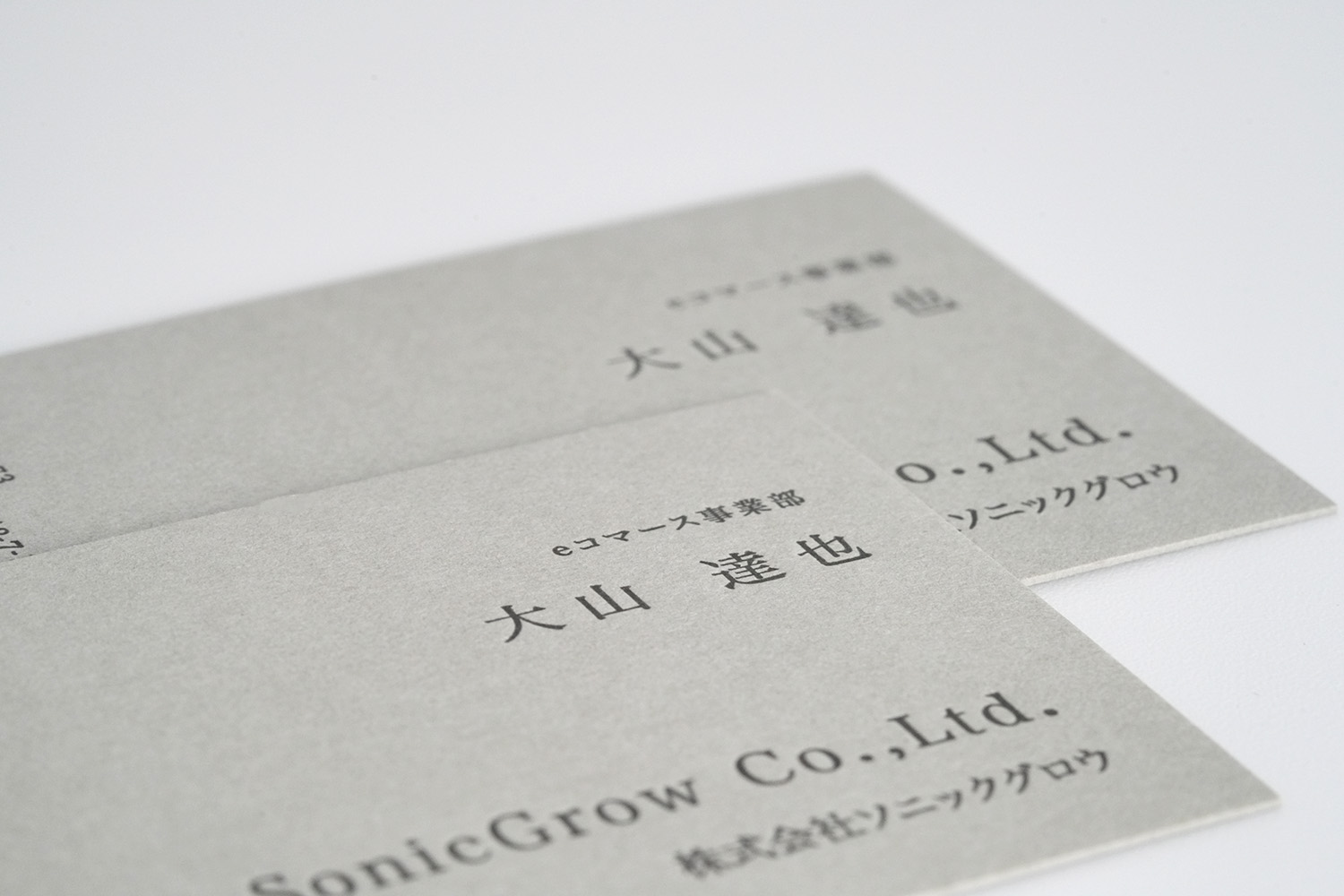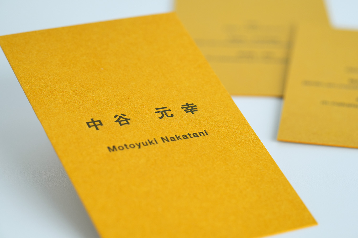 クラフト感たっぷりの、個性が際立つ名刺。もともとのグレーやマスタードの風合いが、素朴で味わい深い印象を与えます。手に取ると、紙の温かみや質感がしっかりと伝わり、愛着が湧く一枚です。イラストレーターや工務店、農園、自然派レストランなど、ナチュラルな世界観を大切にする方々に特に好まれています。紙そのものの表情が、ブランドのこだわりやストーリーをさりげなく伝え、通常印刷でも雰囲気は抜群ですが、活版印刷を施すことで、さらに温もりと奥行きが増し、視覚的にも触感的にも、シンプルながらも存在感のある名刺に。