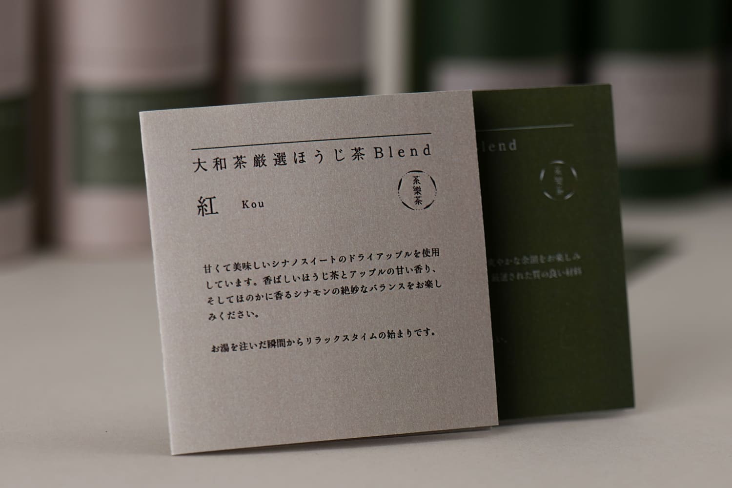 またブレンドしているお茶の大和茶は歴史が古く、806年に弘法大師が唐より種子を持ちかえり、これを現在の宇陀市に播種し、その製法を伝えられた。これが「大和茶」の初めとも言われており、歴史を感じる味わいを出している。