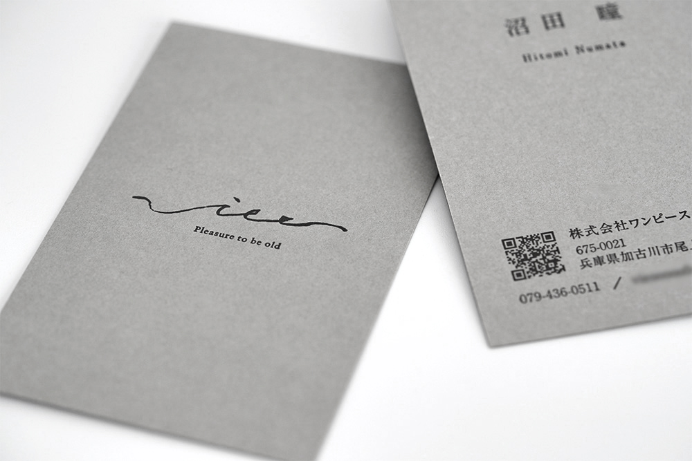 紙の持つ上品な魅力を引き出し、どこか女性らしさも感じさせる美しいお名刺。有機的なロゴマークと、しっかりと質感を感じられるGAボードとの相性が大変良く、世界観が完成されています。当にこの会社様の世界観、空気感を体現する一枚に仕上がりました。ブランディングに於いて、お名刺の紙質もまた世界観を大きく左右する非常に重要な要素となります。