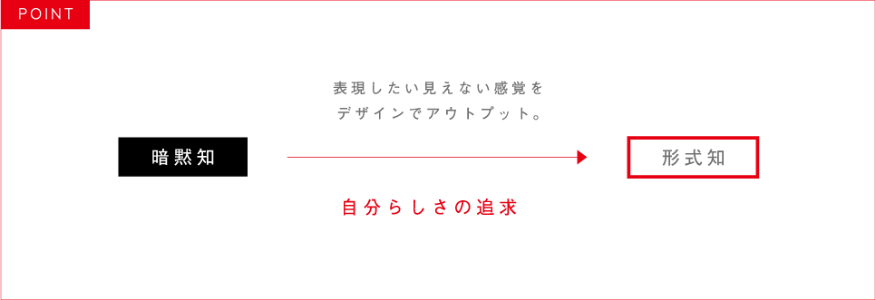 感覚的に伝えたい事(暗黙知)をこちらが見えるモノ(形式知)に変化させ伝える。無形サービスを商品とする生業とする方々にとって伝えるためのデザインは必須です。形式知に変える事により、結果として別所様の感覚をシンボル化させ、本当に聴いて欲しいお客様に正確にアプローチできるようになりました。