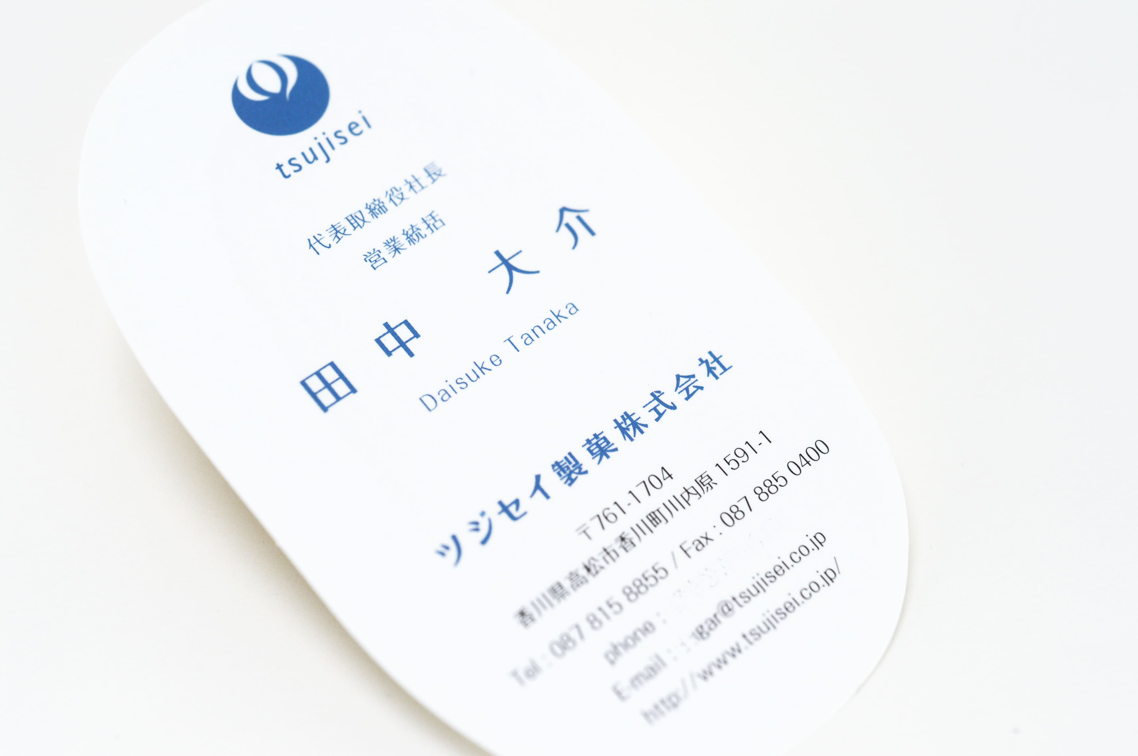 贈る感動を製造する「お菓子(おかし)な会社」というコンセプトに恥じぬ名刺。