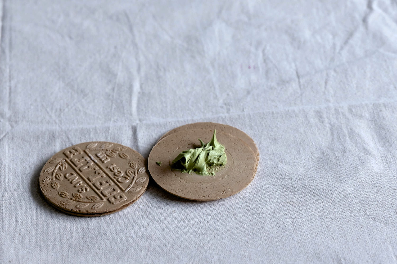 表のホワイトクラフトはホワイトチョコをコーティングしたパイのようなお菓子な封筒。