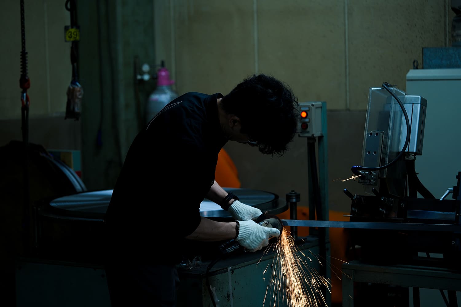 ある一定の規則性で鳴る、ナカヤマの歴史や文化的背景を感じる芸術的な作業音、