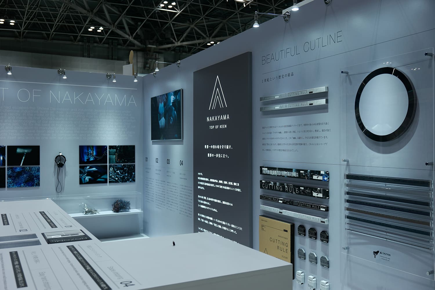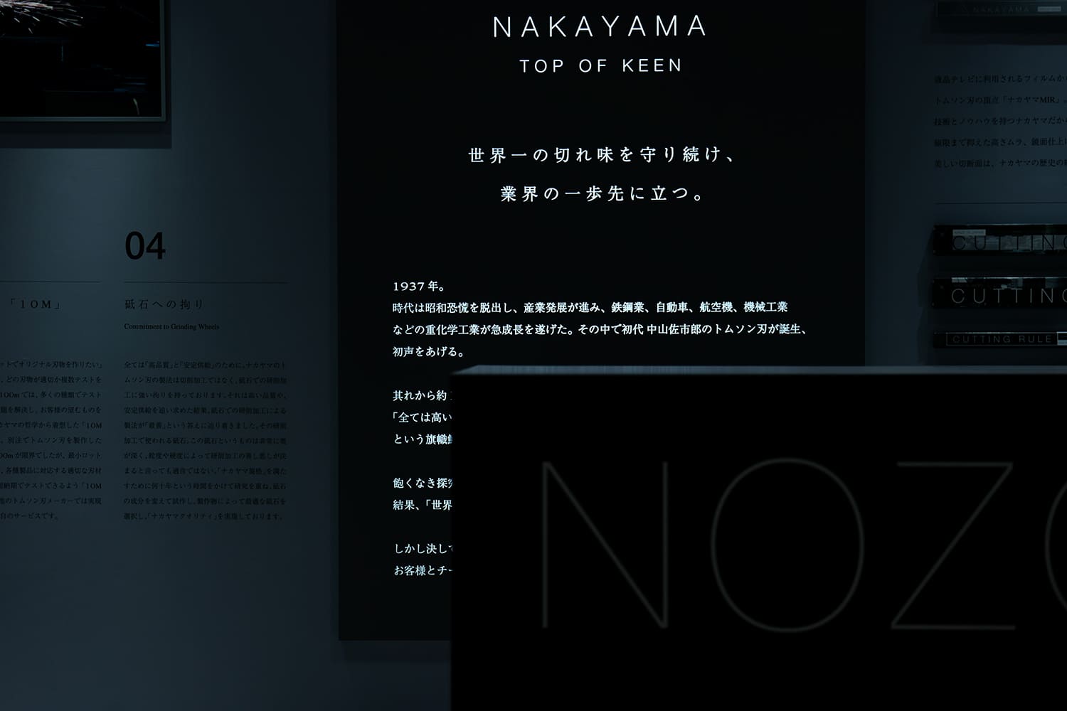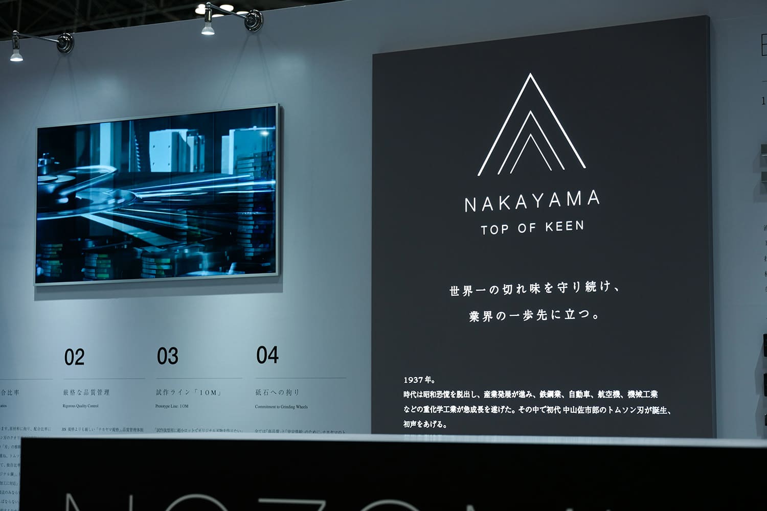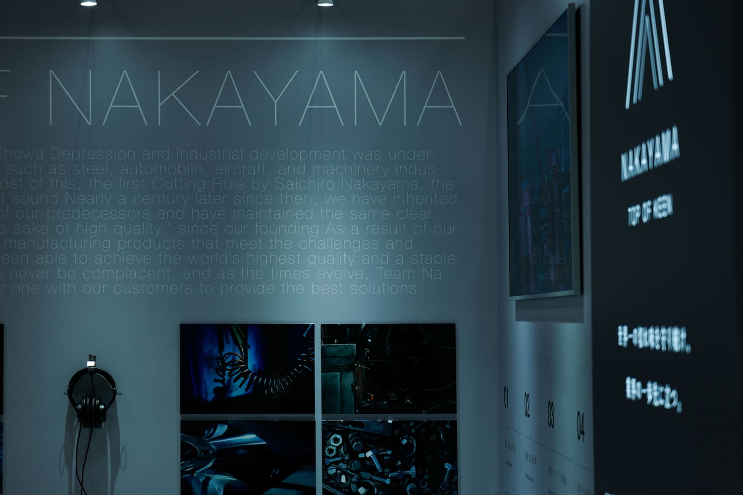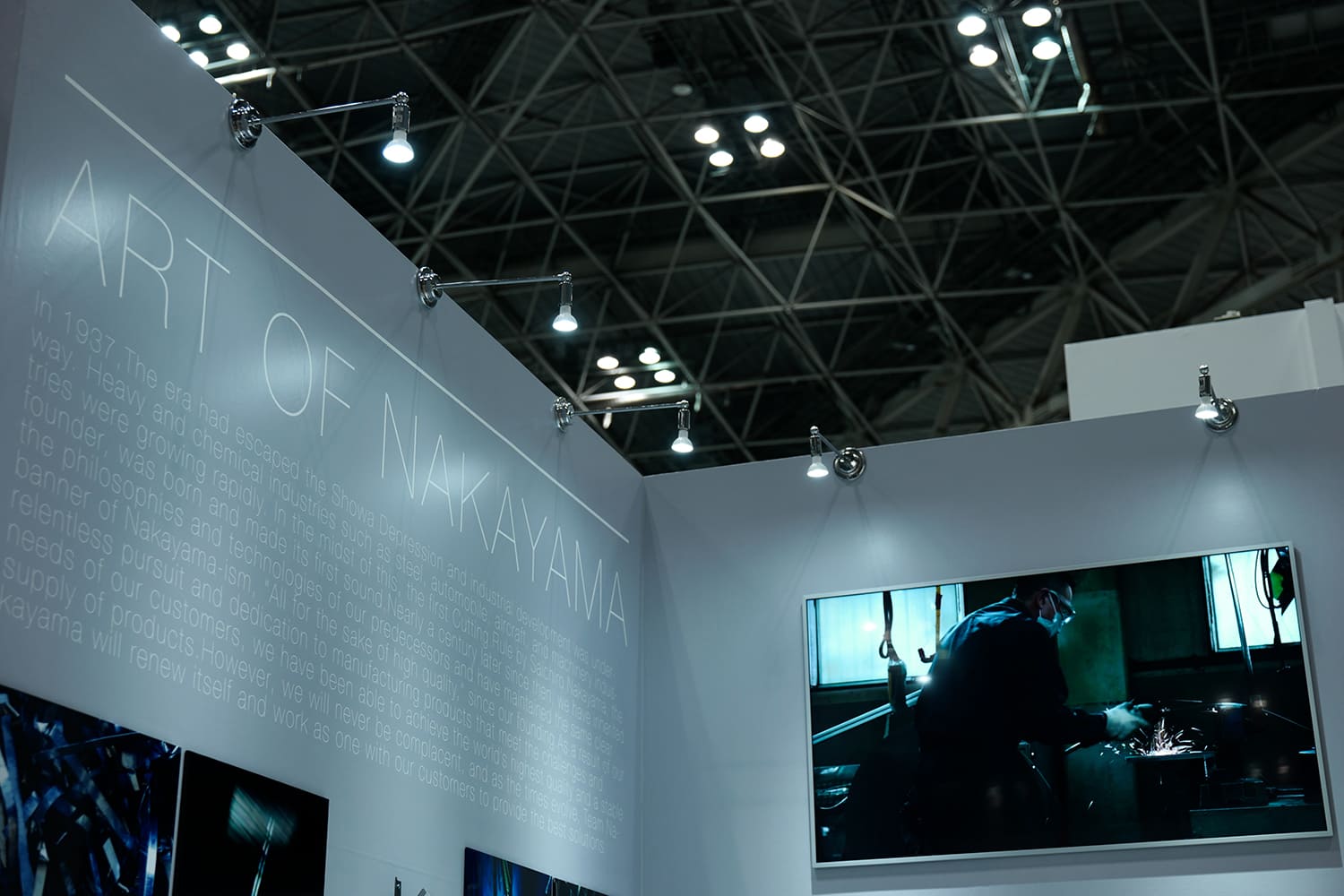 左サイドにはブランドムービーを始終再生し、その直下には「ナカヤマの拘り」を展示会用にリライトした。