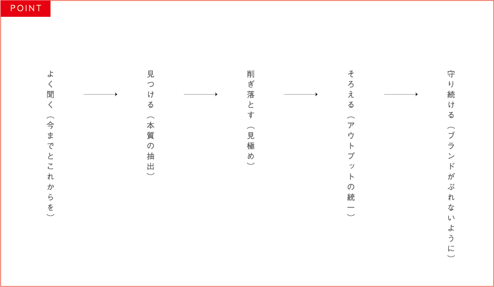 クライアント様から自然と出てくるものが、何十年後も使える本質的な言葉であり最適なデザインなのです。