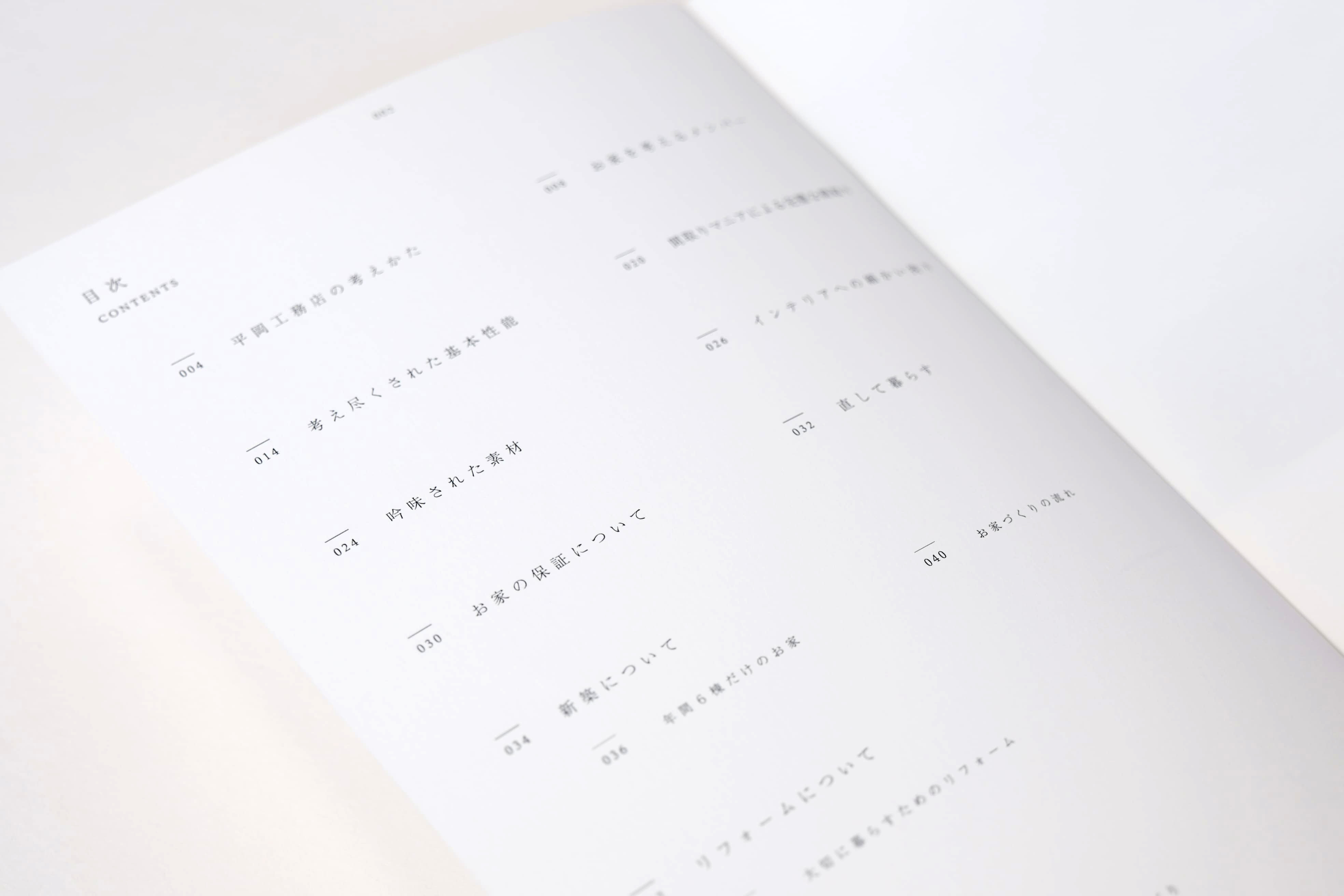 これがお施主さまと一緒につくりあげていく平岡工務店の会社パンフレットです。