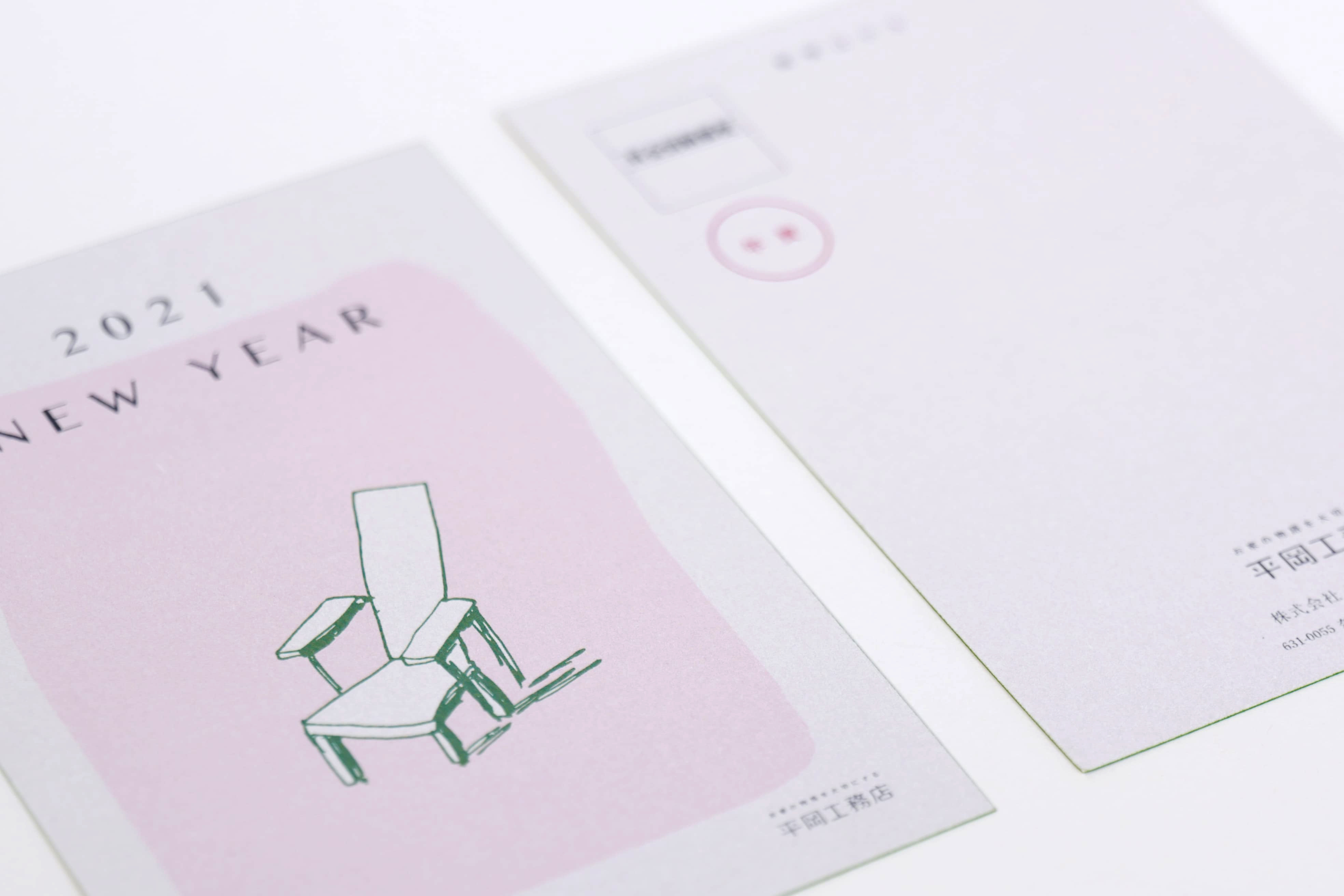 平岡工務店のお家づくりと同じ印象をこの年賀状でも表現しました。