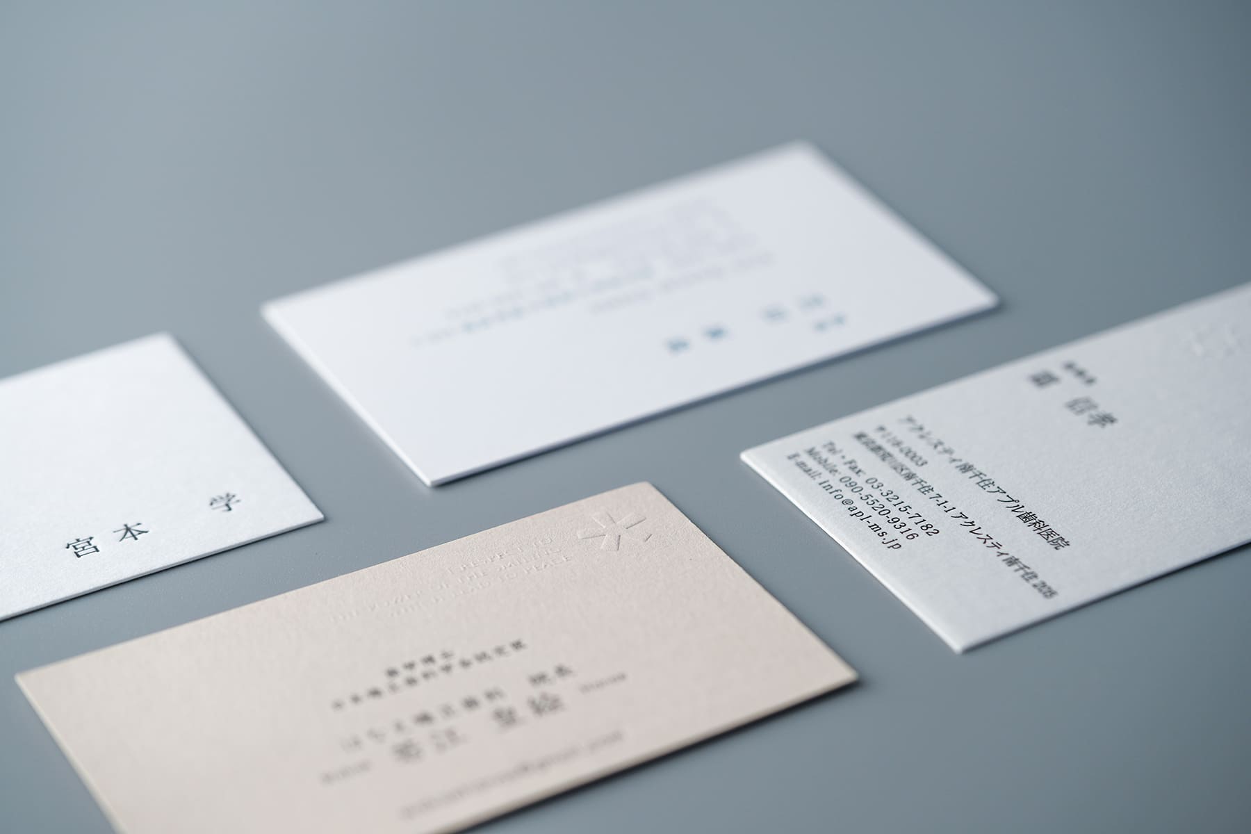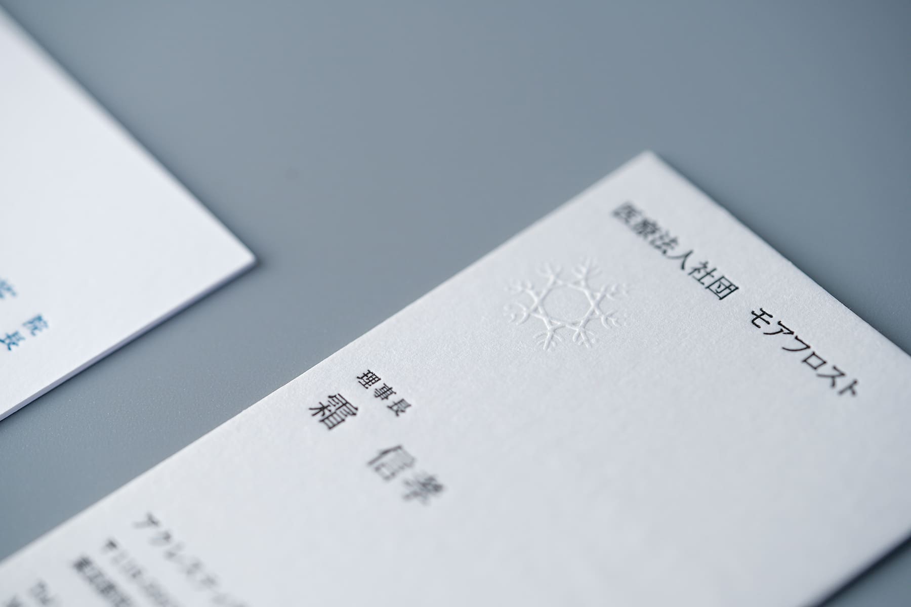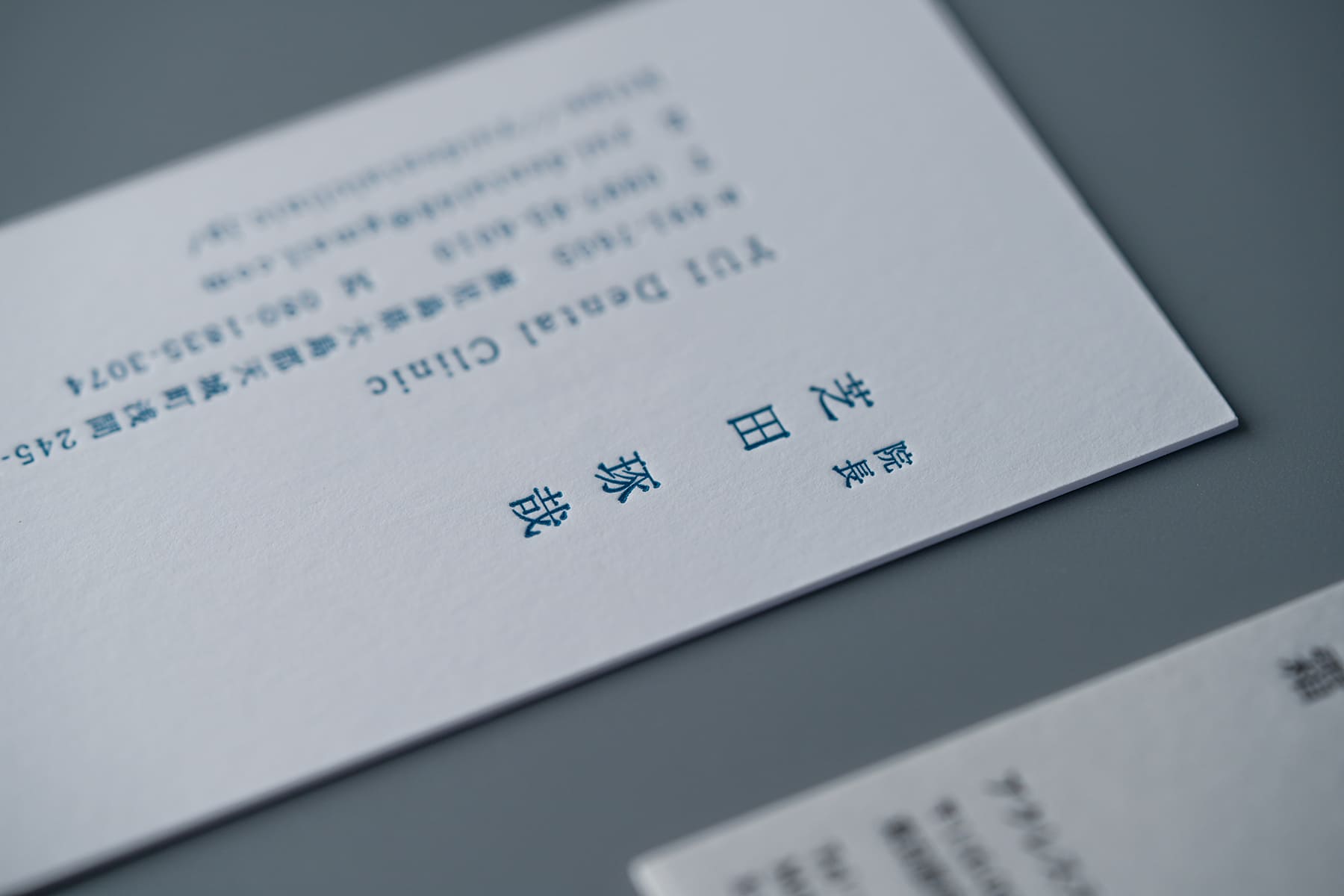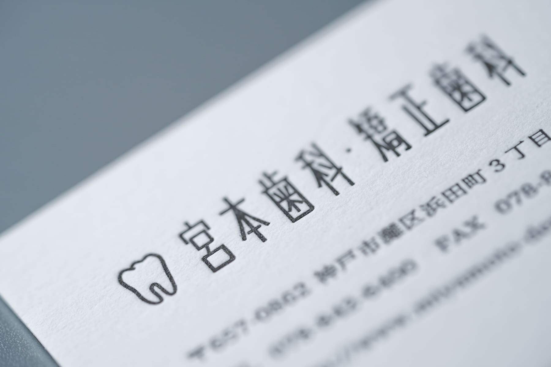 デザインだけではなく印刷技術も非常に重要。この様な形状が細い歯科医師のロゴでも繊細に活版印刷が出力できる。