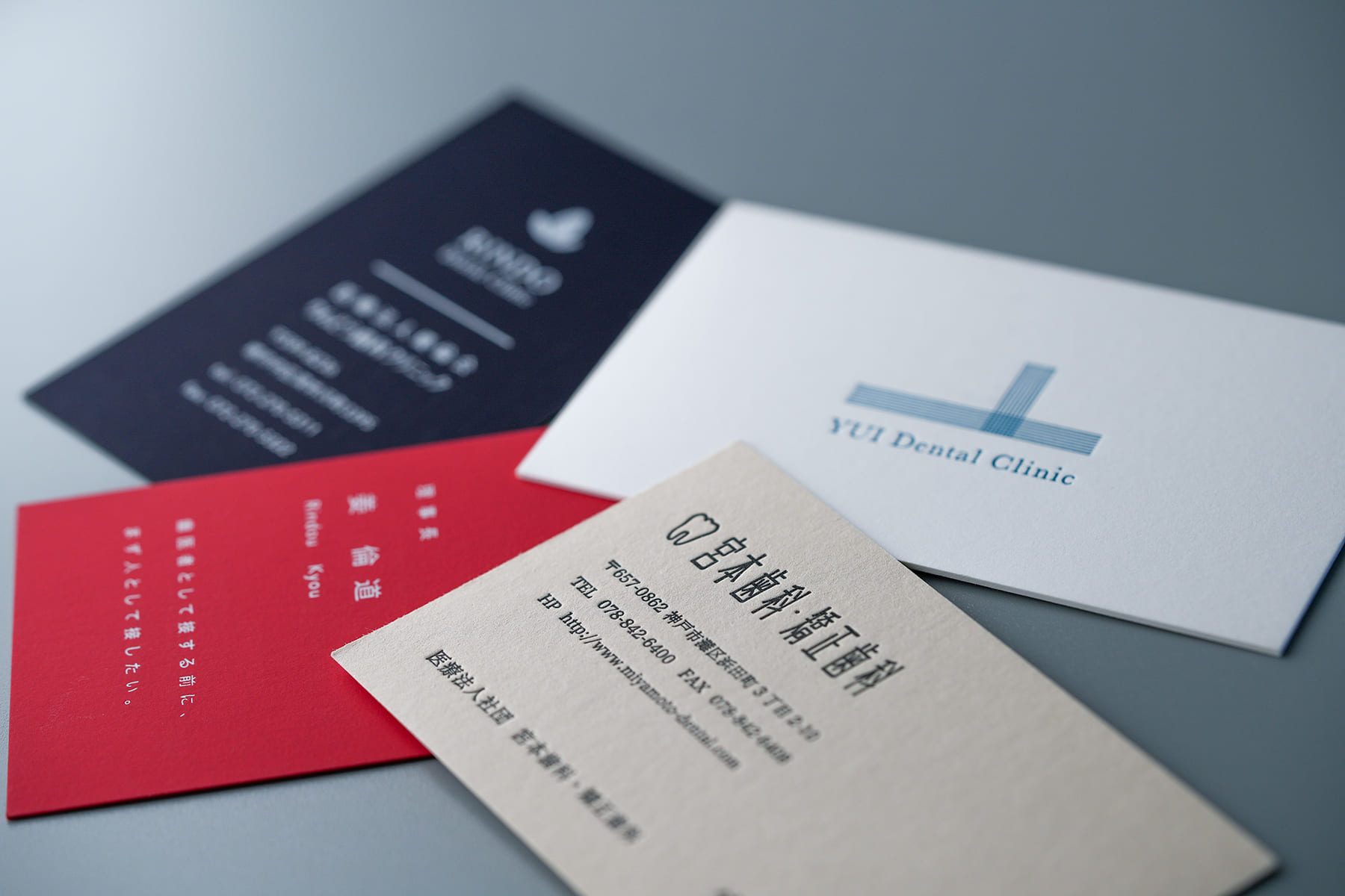 歯科医師の名刺だけではなく、診察券のデザイン依頼も多い。患者様にわたる全てのツールをデザインしてはじめてブランディングが成立する。