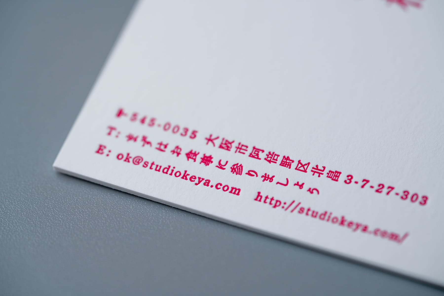 僕の2023年現在の名刺。真っ白で分厚いスノーブルに、この朱が非常に映える。