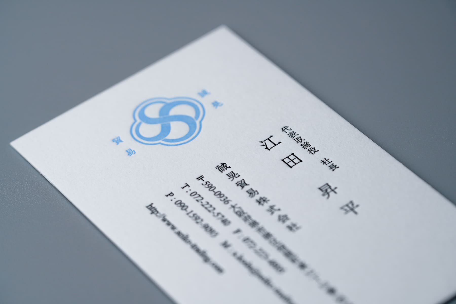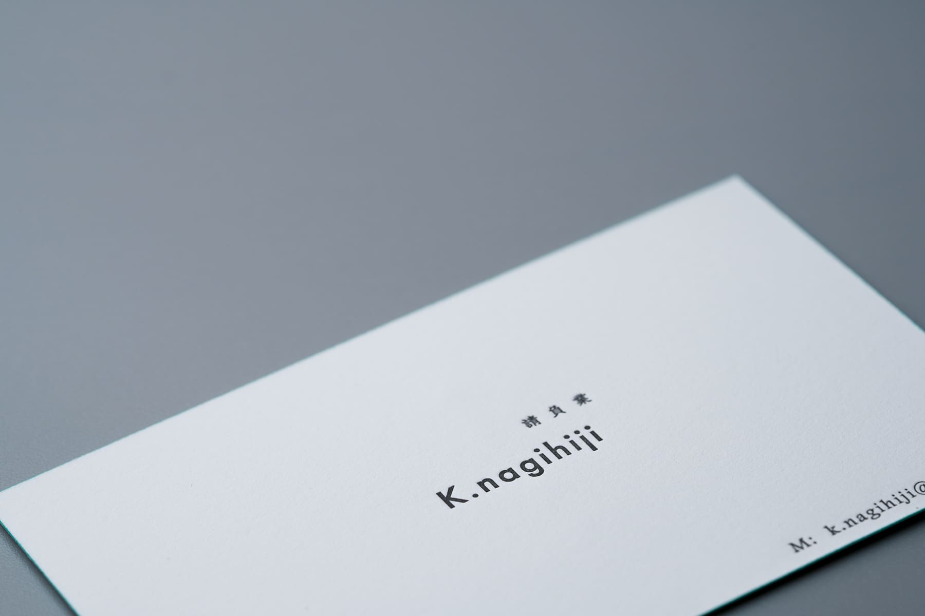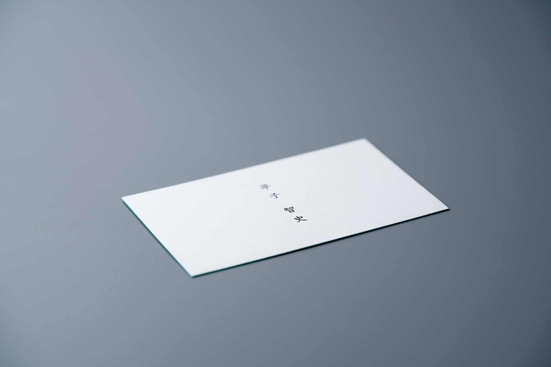 同じ社長名刺でもこちらは無造作な佇まいで、さりげない美しさがある。ミントブルーと完全なブラックではない黒の組み合わせが絶妙。
