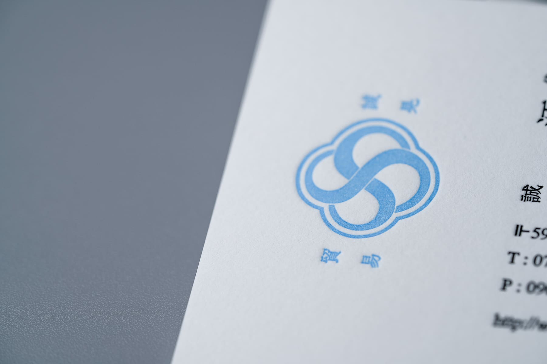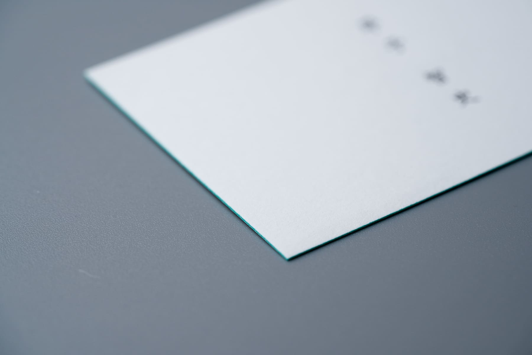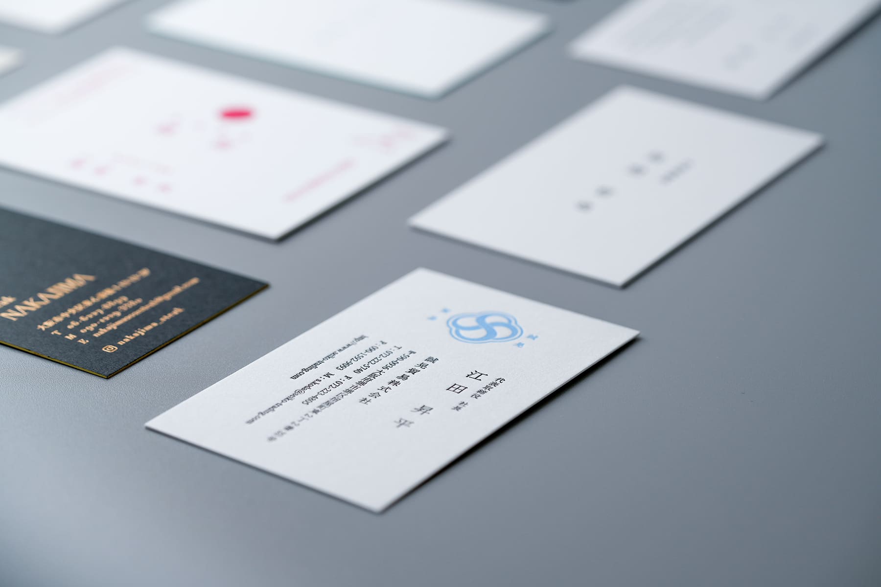 同じ社長名刺でもこちらは無造作な佇まいで、さりげない美しさがある。ミントブルーと完全なブラックではない黒の組み合わせが絶妙。