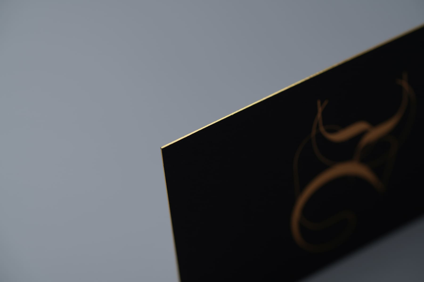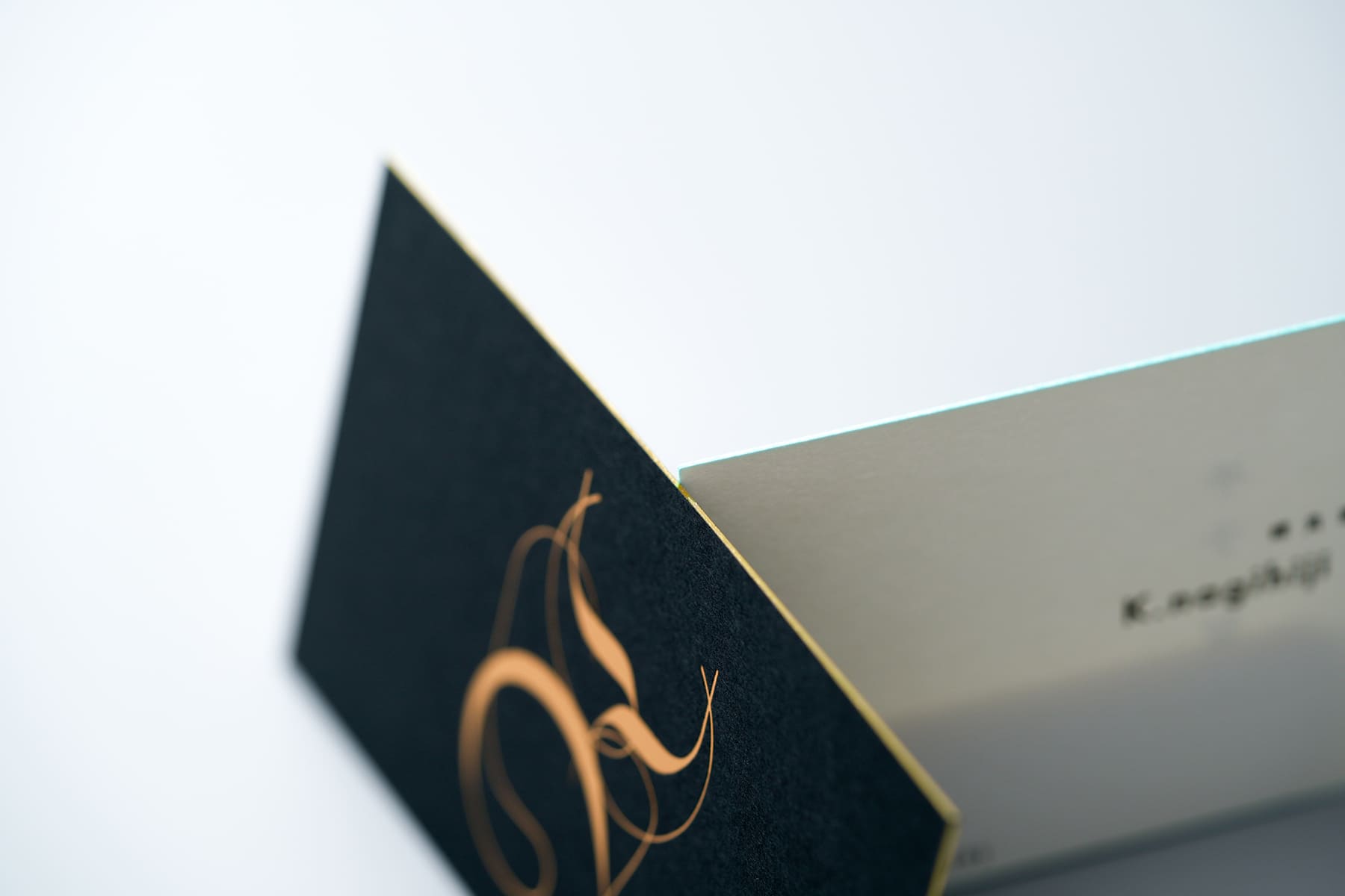 この金の小口染めのインパクトは感性を完全に解放している。独特な空気感を出せる社長名刺。