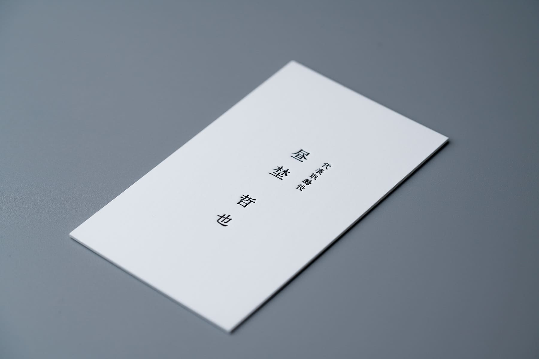 風格ある社長名刺。余白がある意味の威圧感を発生させる。社長たるものこれくらいの情報量で堂々と見せる。