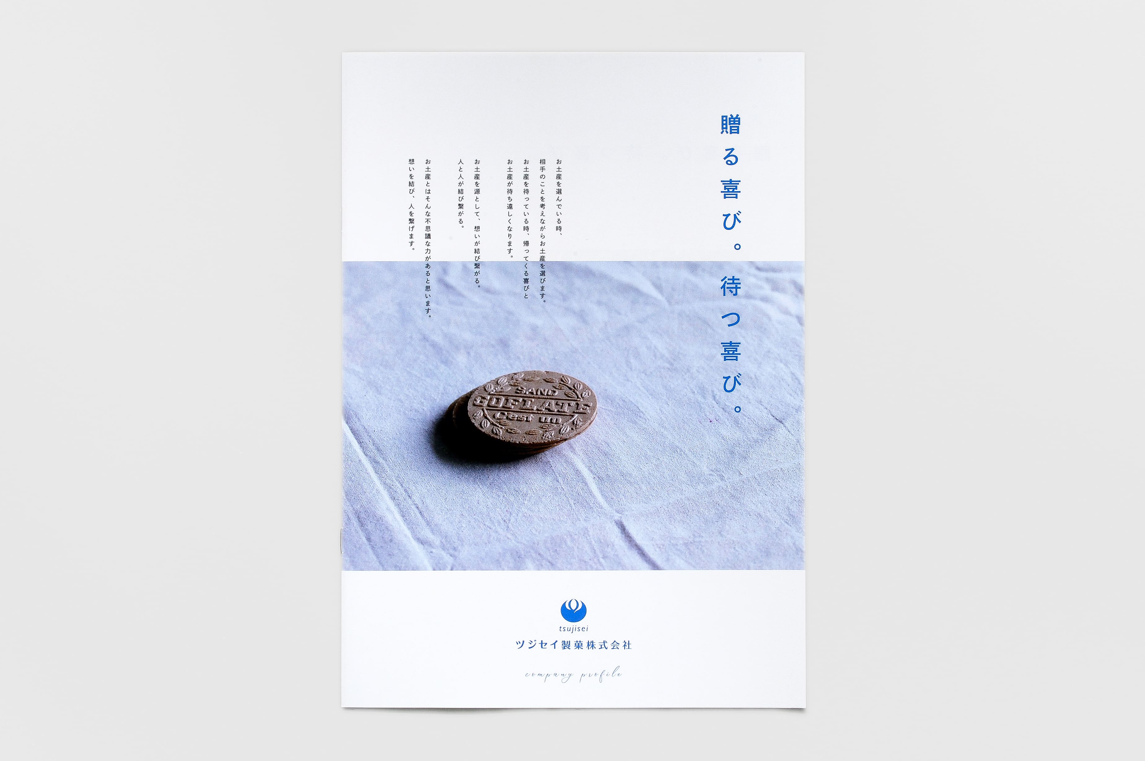 贈る感動を製造する「お菓子(おかし)な会社」として、1986年の創業以来、毎年多くのお土産を生み出しているツジセイ製菓株式会社様のパンフレット。 ふわっと軽やかな色とりどりのクリームや、テンパリングチョコの艶感、手作業で丁寧に折られたパイ生地。 一つ一つの質感や拘りを映した世界観のある写真に、ツジセイ製菓様らしい「クスっ」と微笑んでしまうコピーを添えました。 老舗の饅頭屋の重厚感のある雰囲気でもない。 巫山戯過ぎても温度感からずれて来る。 そのちょうど良いおしゃれ塩梅を考えてデザインしました。