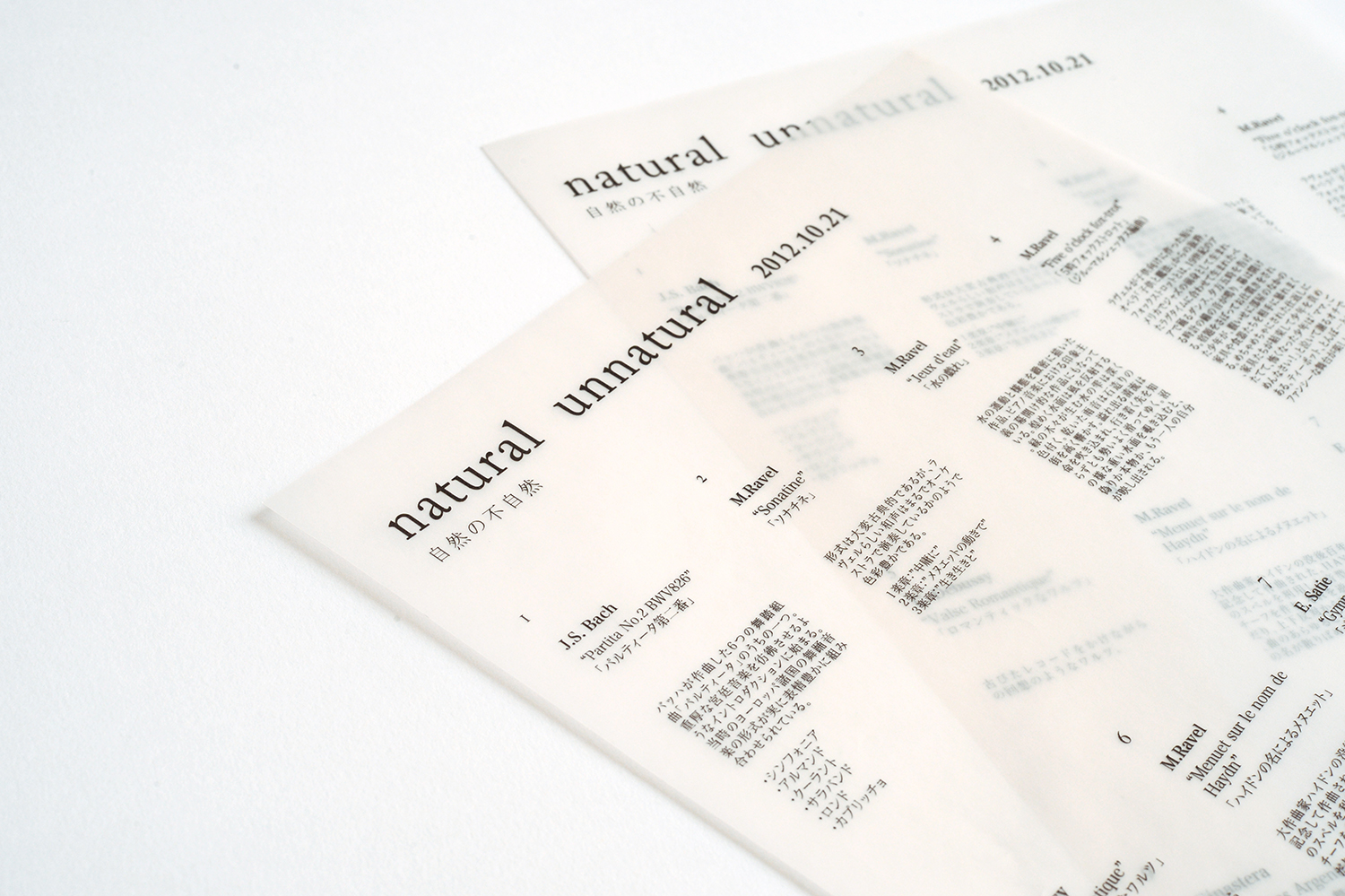 クロード・アシル・ドビュッシー、モーリス・ラベル、エリック・サティ… 19世紀を代表するフランス音楽が収録された、高級感漂うCDジャケット。ユーモア、優雅さ、洗練さがありながらも、 どこか哀愁の漂う旋律は、 深い精神性の領域へと誘います。 彼女たちの奏でる独創的で美しい世界観を、一枚のモノクロの写真と整列されたグラフィックで表現しました。
