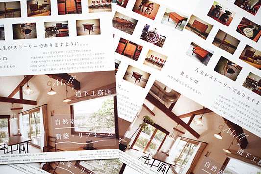 ユニークなデザインで人をワクワクさせる、完成見学会のフライヤー。巷でよく見る完成見学会のチラシとは全く異なるデザインで、クライアント様の個性と世界観を凝縮しました。