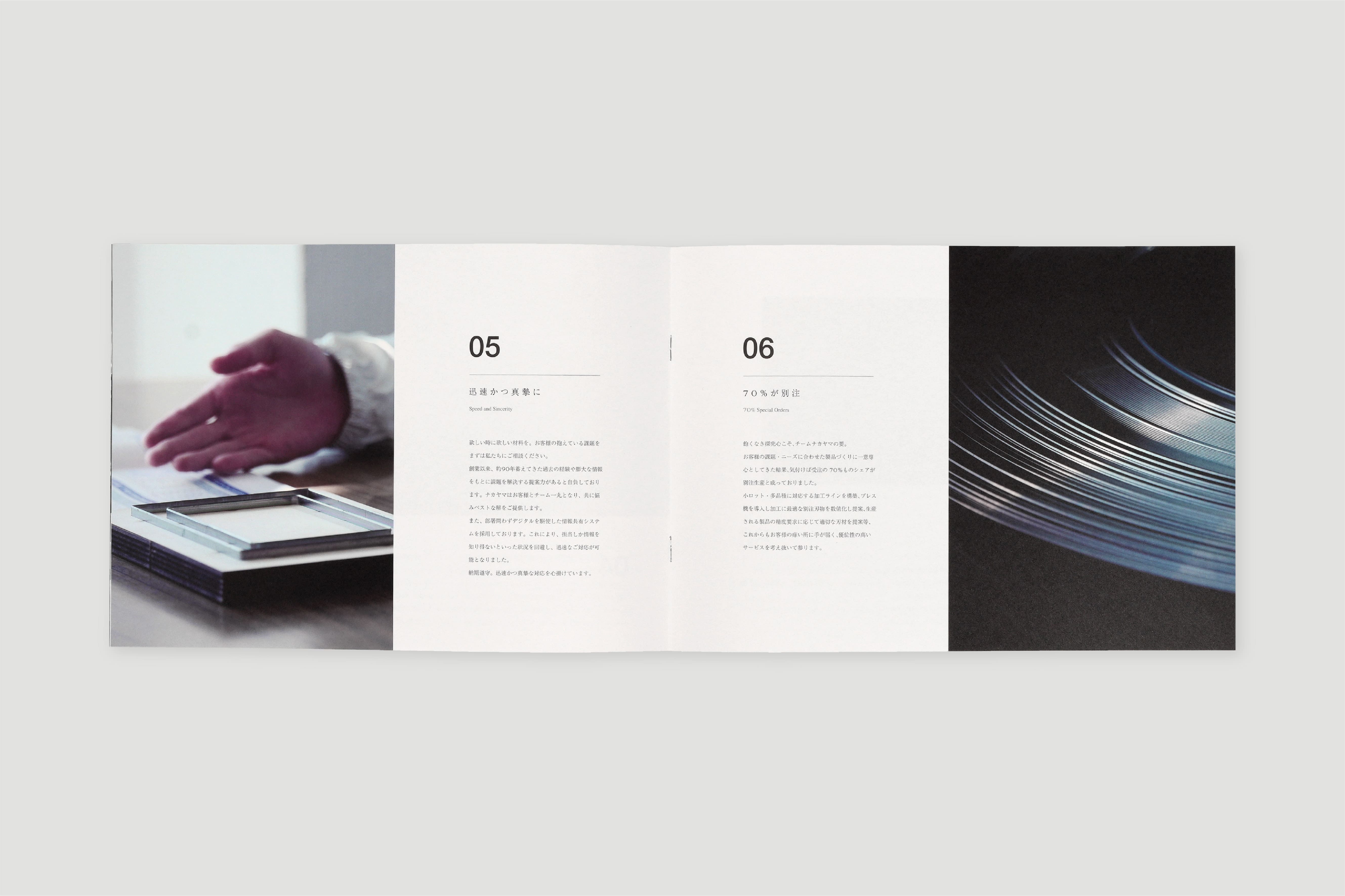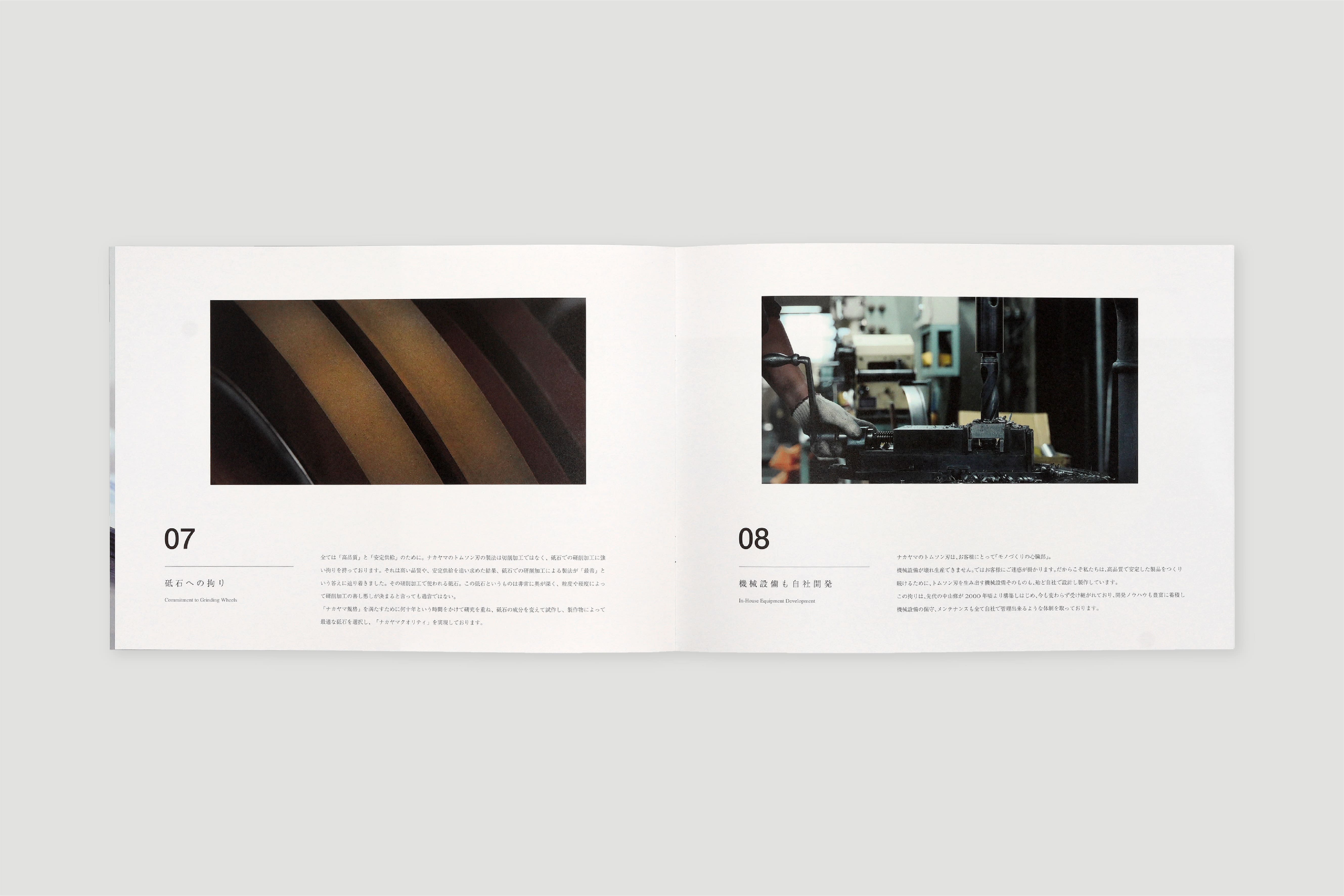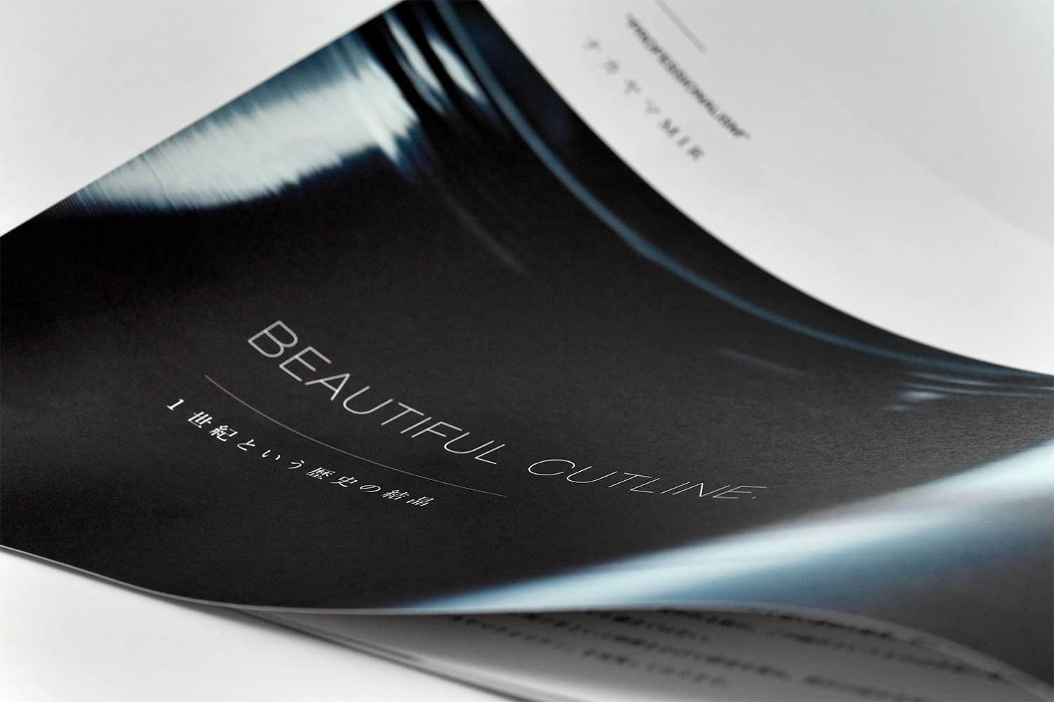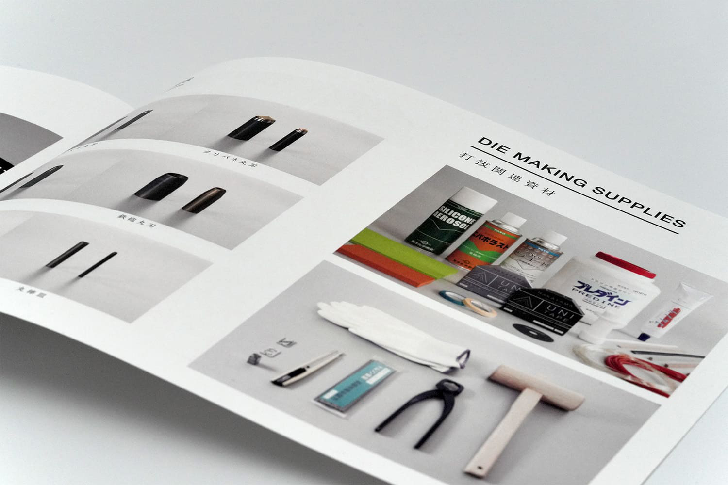 1937年創業。約1世紀にわたり世界一の品質でトムソン刃を製造し続けてこられた、株式会社ナカヤマ様の会社パンフレット。表紙に据えられた銀に光輝くロゴマークによって、一瞬にして世界観に引き込まれます。美しい写真と研ぎ澄まされた言葉の一つ一つがイズムを体現し、正に会社の分身体の様な一冊となるようデザインしました。