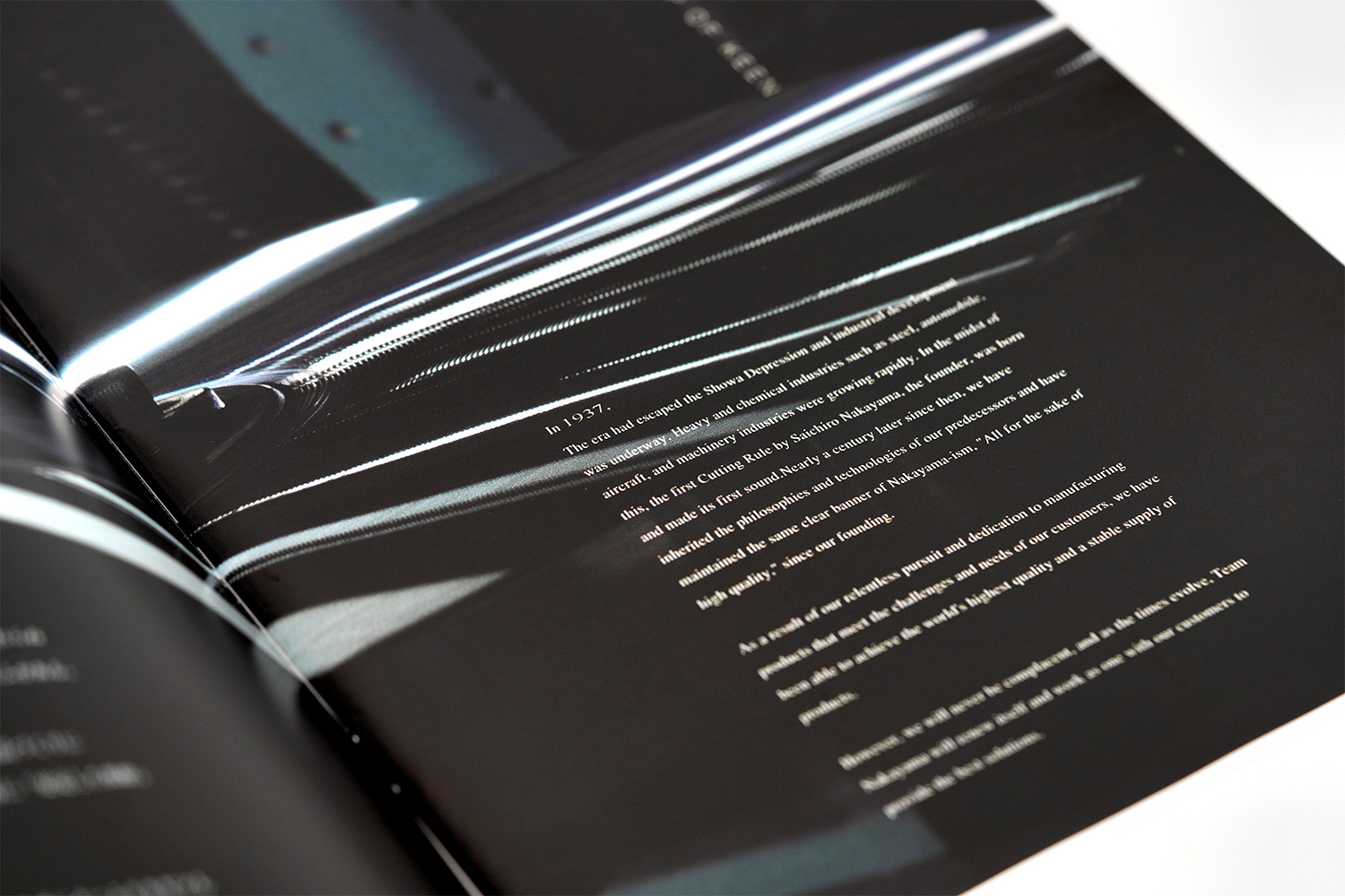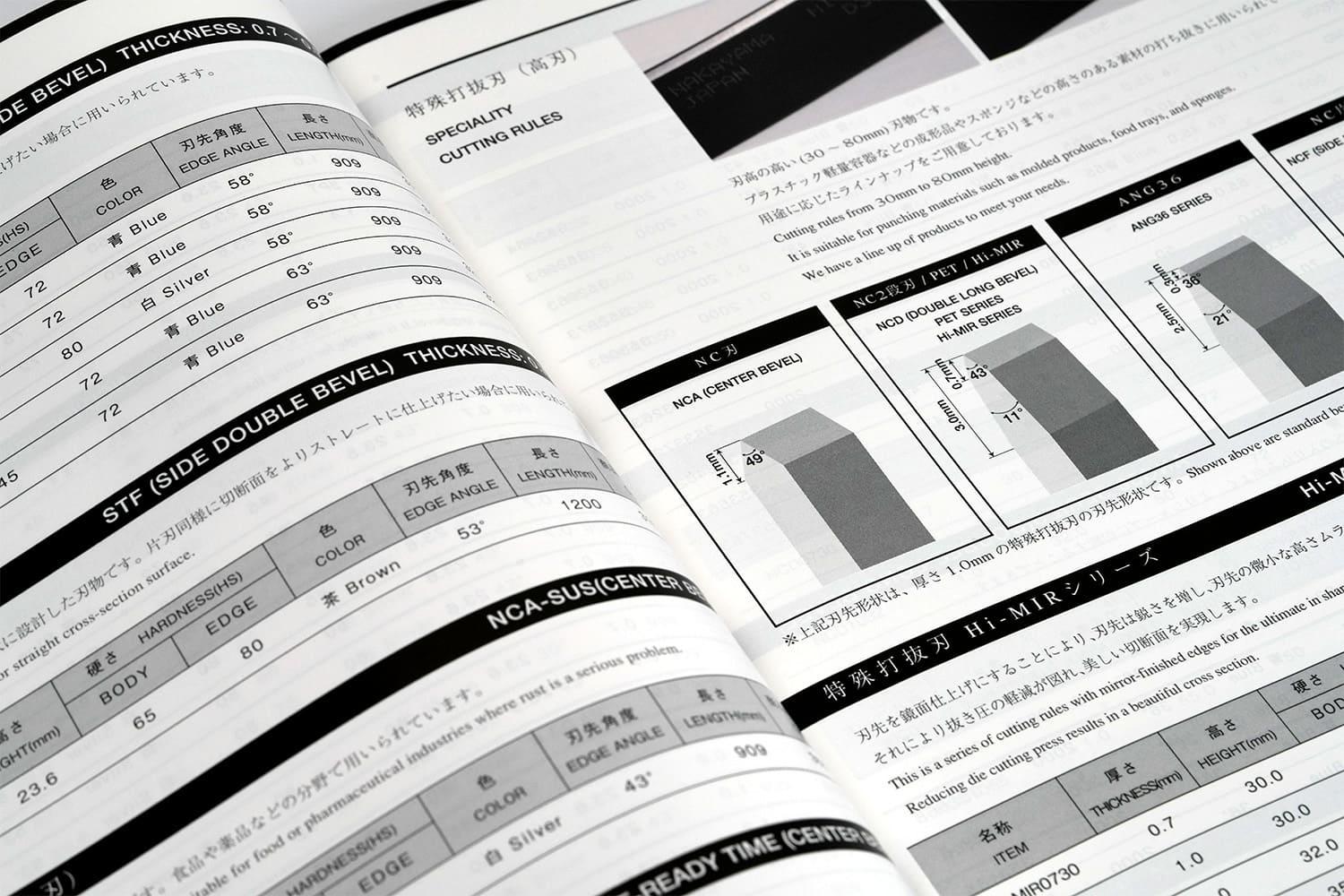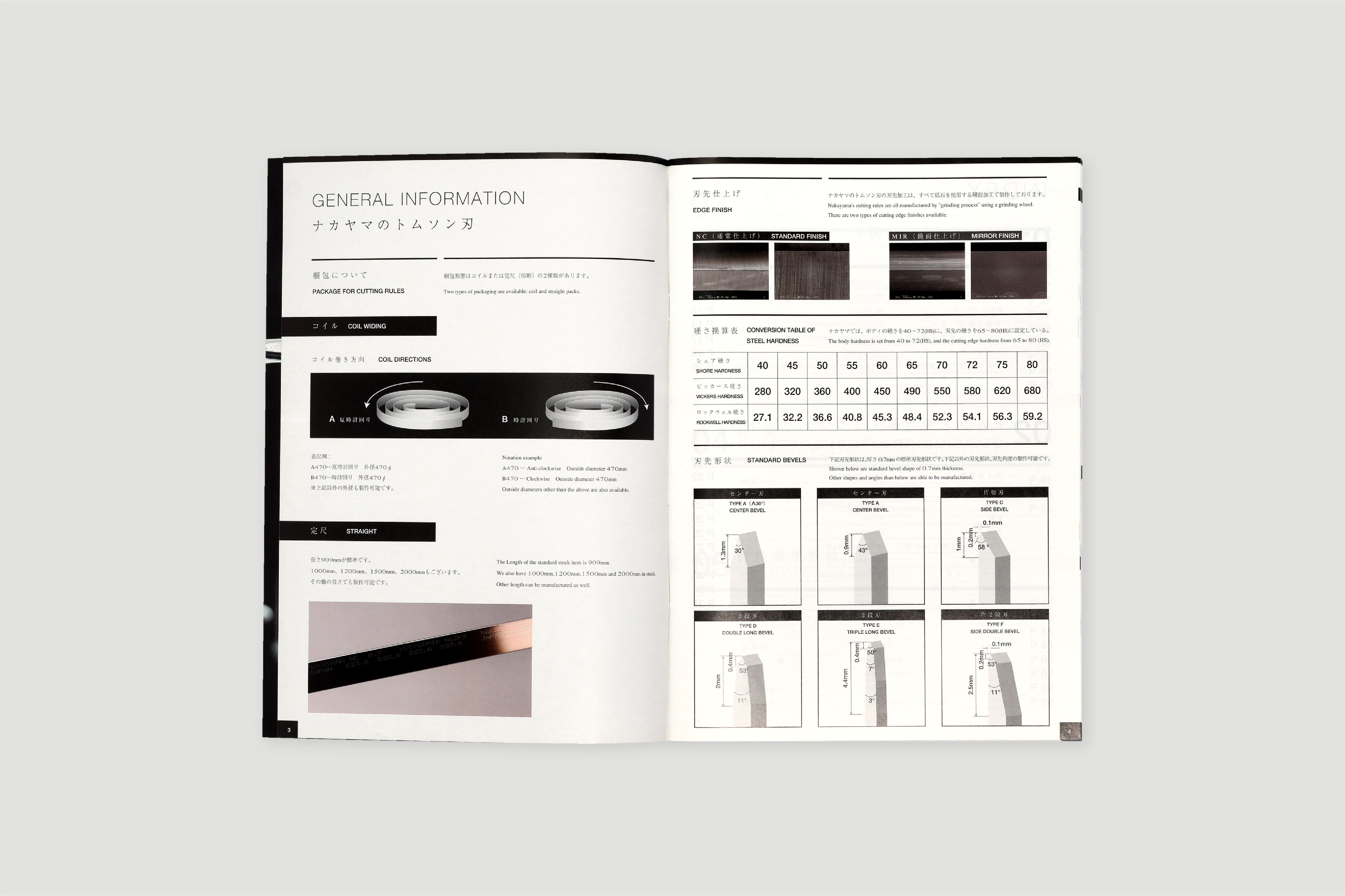 1937年創業。約1世紀にわたり世界一の品質でトムソン刃を製造し続けてこられた、株式会社ナカヤマ様の製品カタログ。ラインの太さ、テキストの大きさ、余白のバランス、ひとつひとつのあしらい、細部に至るまで徹底してこだわり抜き、只々製品を羅列するだけの一般的な製品カタログとは一線を画す美しいデザインに仕上がりました。また随所にイメージカットを配置することで、製品だけでなく世界観にも浸ることのできる一冊。
