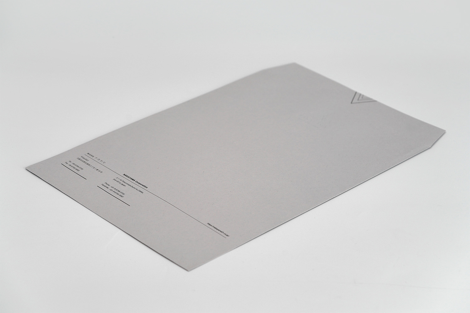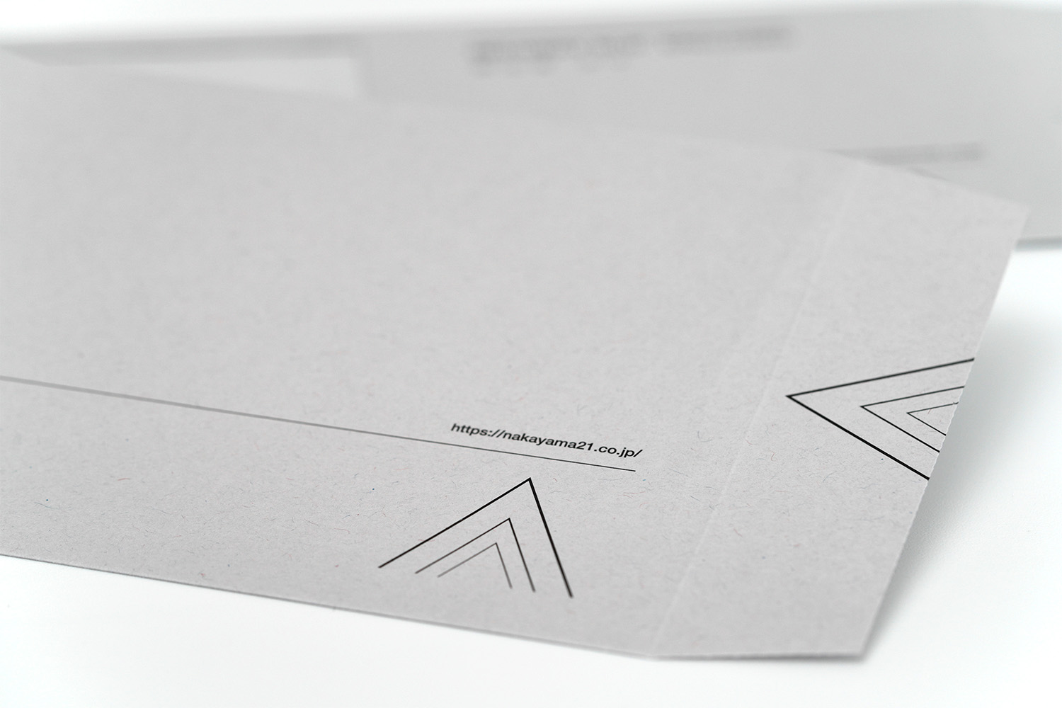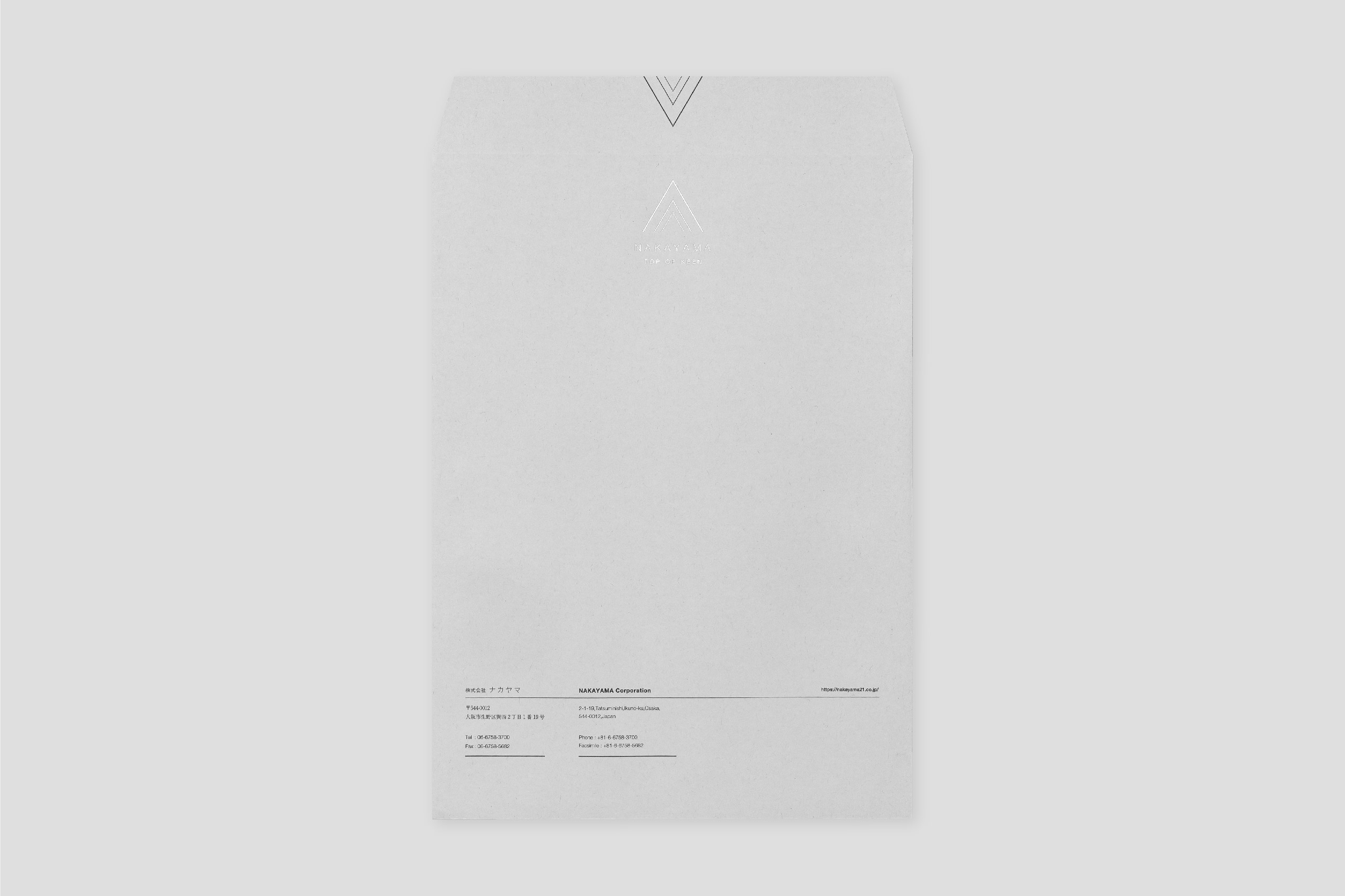 1937年創業。約1世紀にわたり世界一の品質でトムソン刃を製造し続けてこられた、株式会社ナカヤマ様の封筒。緻密にレイアウトされたラインのデザインが繊細で美しく、「世界一」を誇るナカヤマ様のアイデンティティを表現しています。グレーの紙との相性も良い。角2封筒には銀箔をあしらい、鮮烈なインパクトを与えるデザインに仕上がりました。