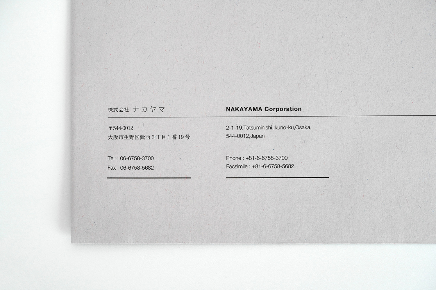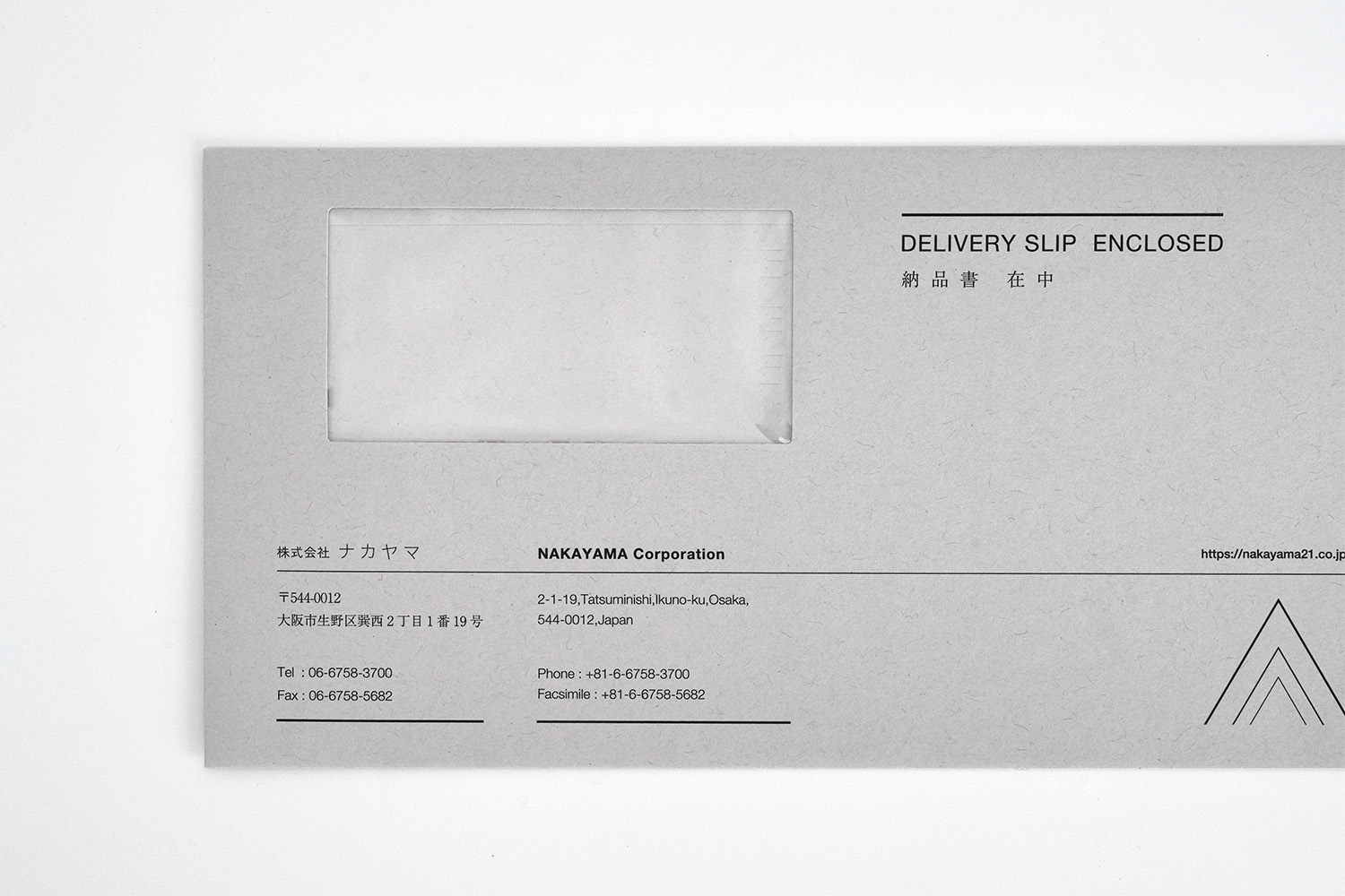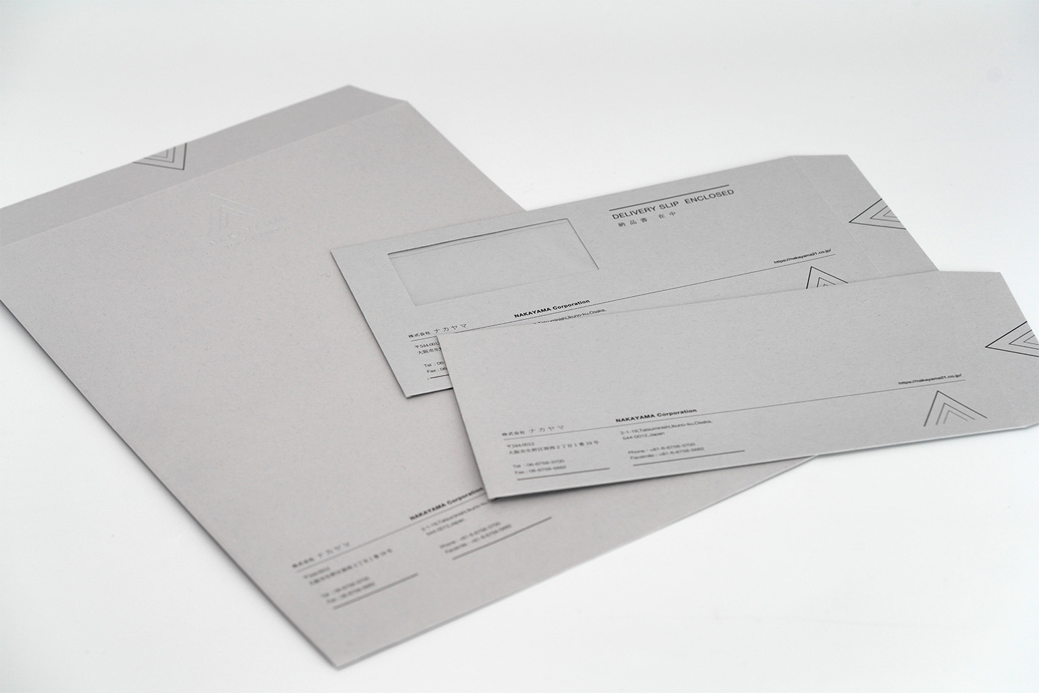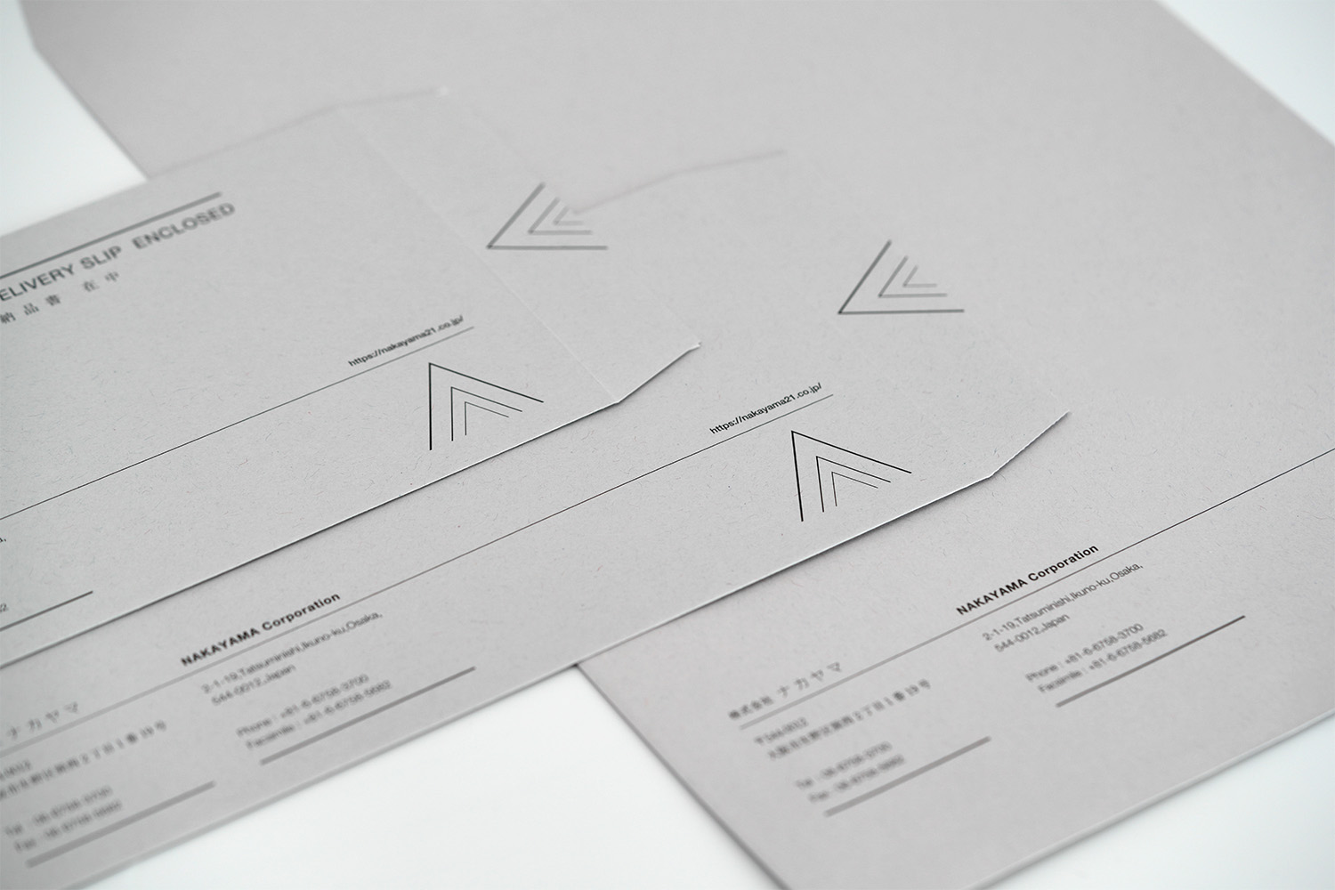 1937年創業。約1世紀にわたり世界一の品質でトムソン刃を製造し続けてこられた、株式会社ナカヤマ様の封筒。緻密にレイアウトされたラインのデザインが繊細で美しく、「世界一」を誇るナカヤマ様のアイデンティティを表現しています。グレーの紙との相性も良い。角2封筒には銀箔をあしらい、鮮烈なインパクトを与えるデザインに仕上がりました。