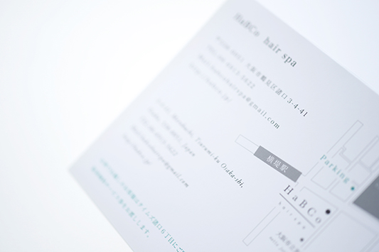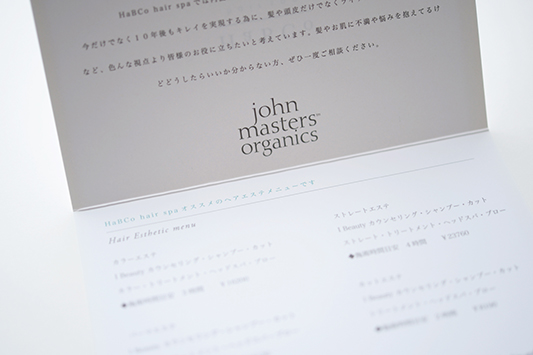 敷き詰められたものではなく、余白の美しさを担保した美容室パンフレット作成。