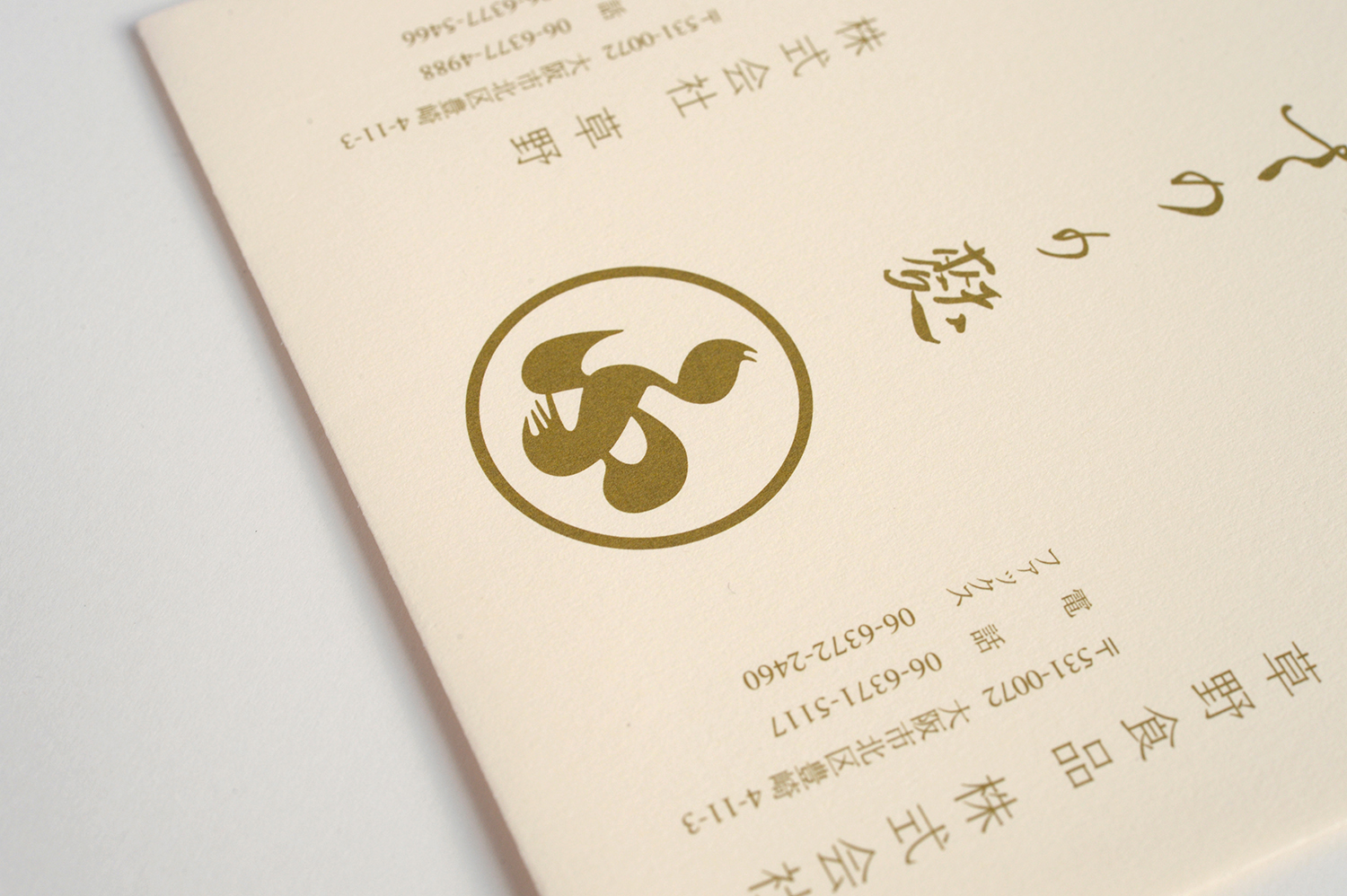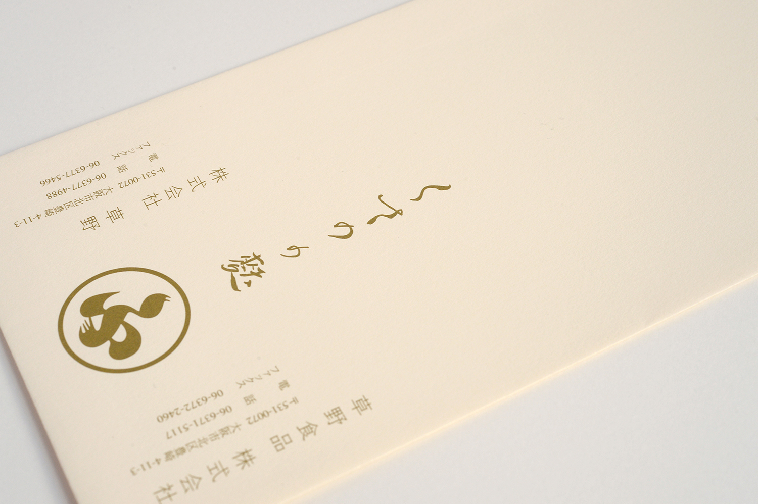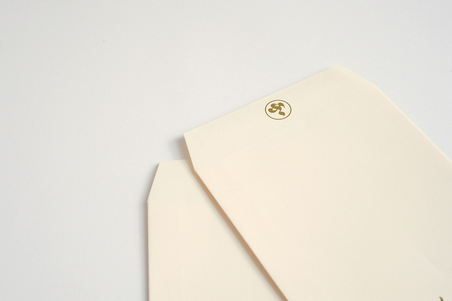 ロゴや文字の色が優しく溶けこむ封筒。