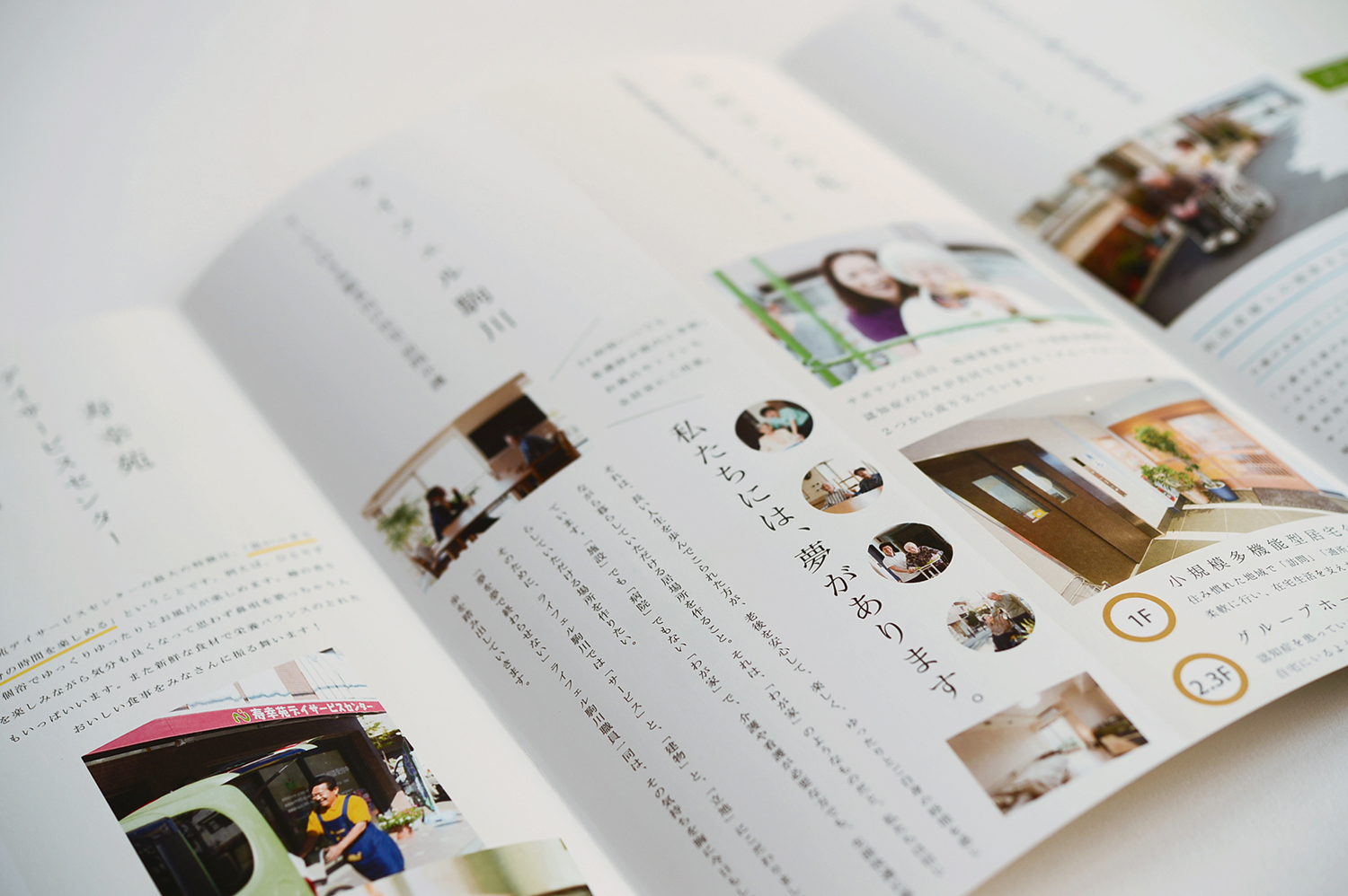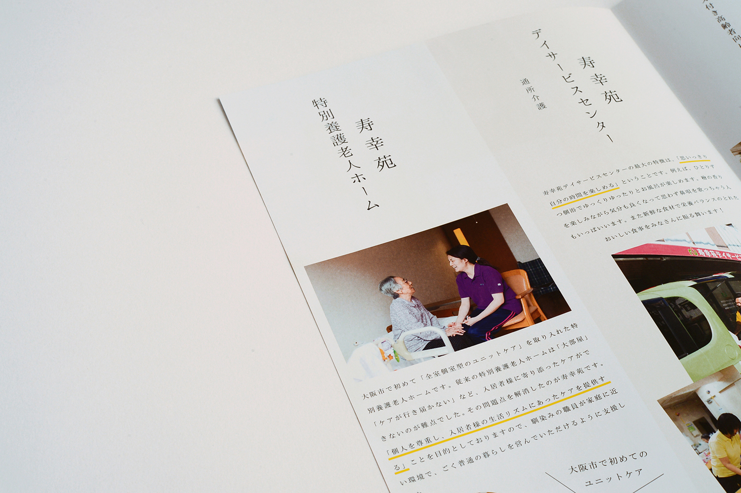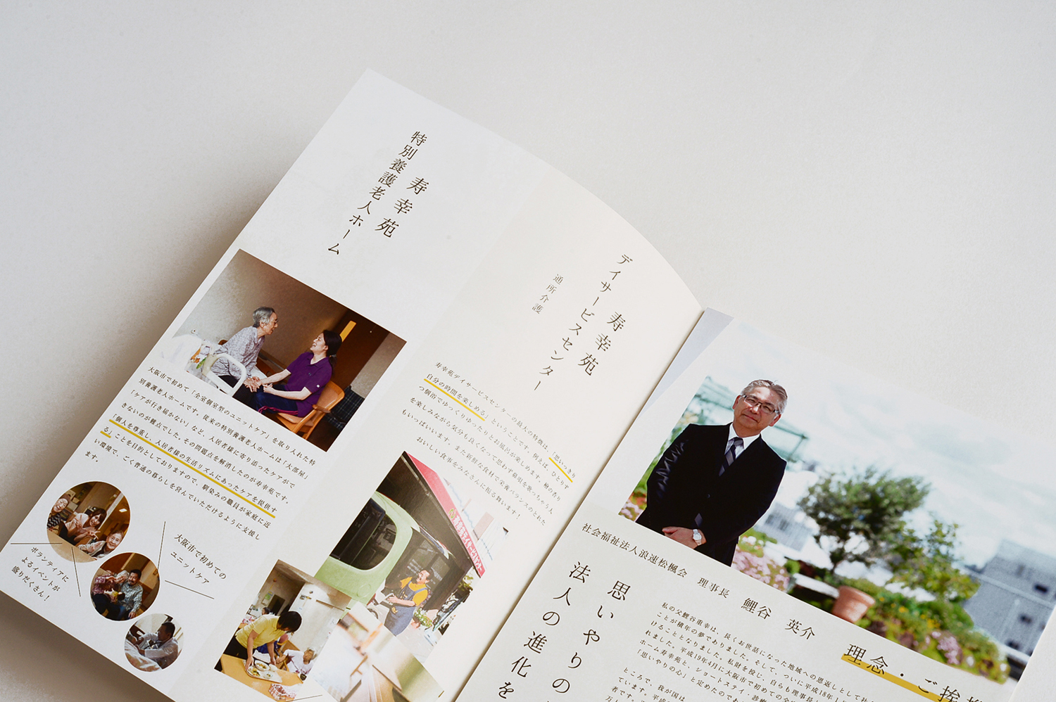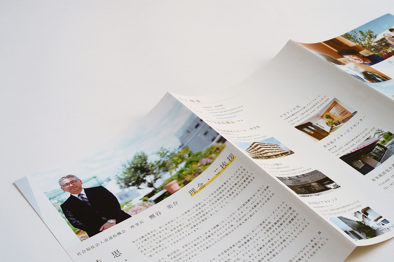 判読性・可読性も考慮しデザインを作成した介護施設のパンフレット。
