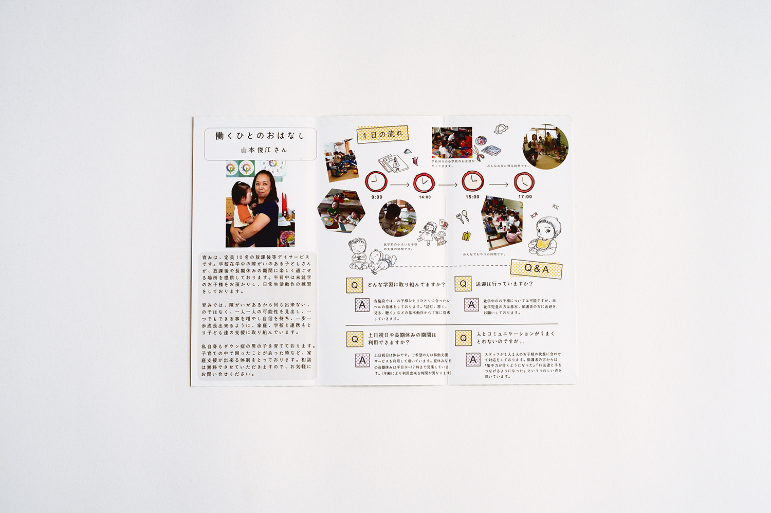 ひとりでも多くの方に見てもらえるよう、デイサービスパンフレットデザインを作成。