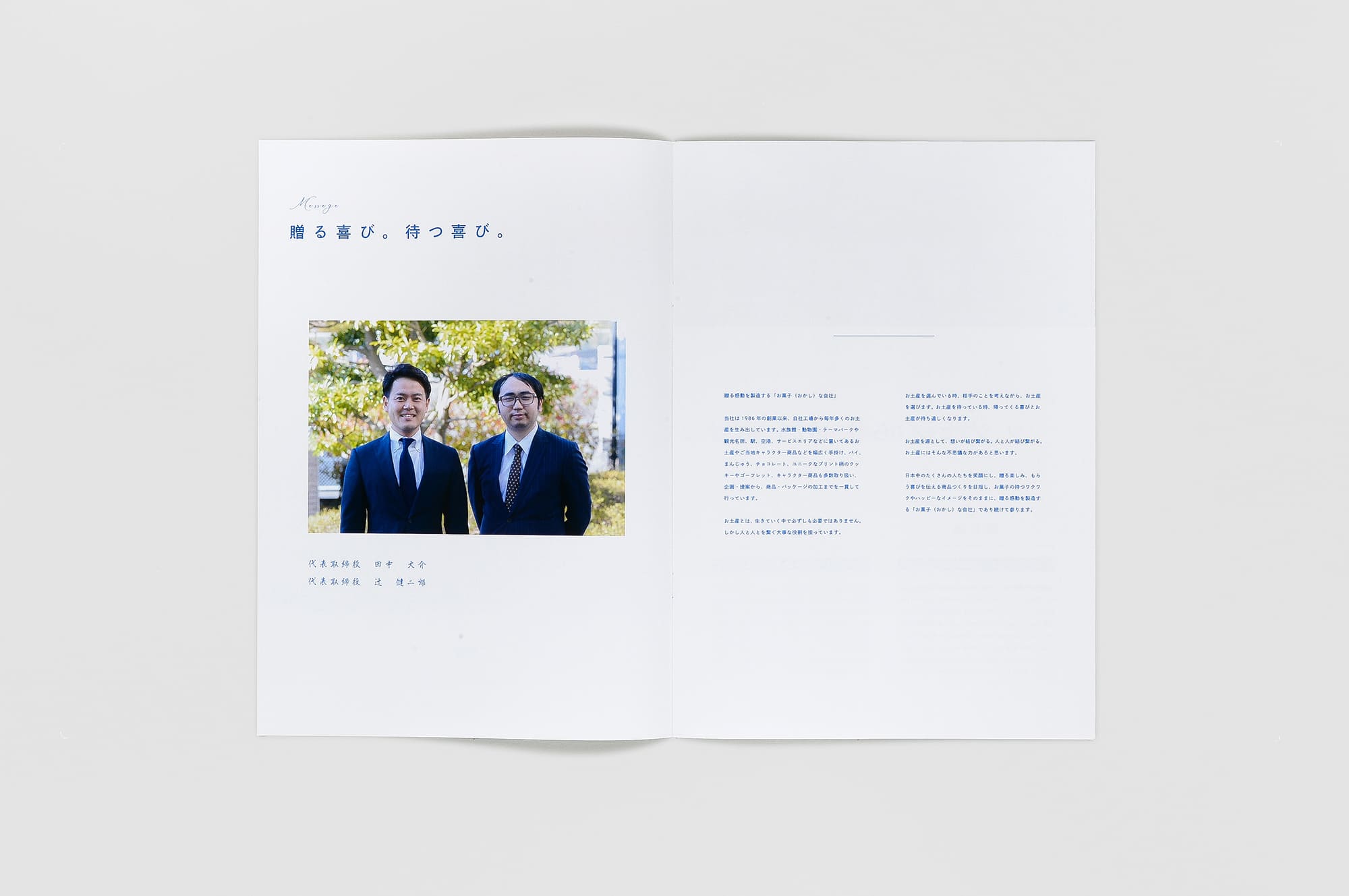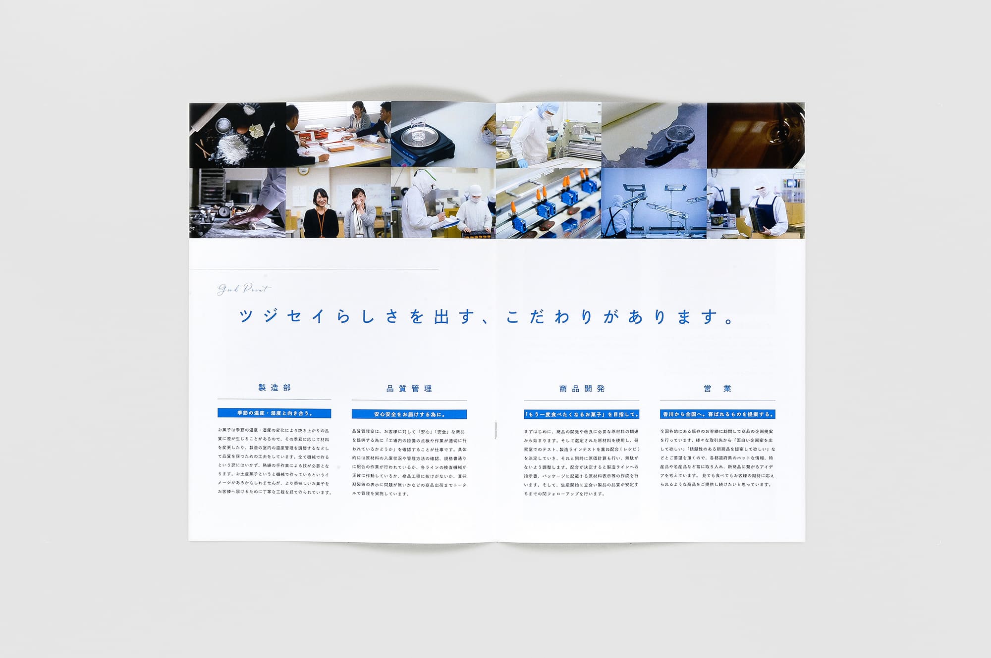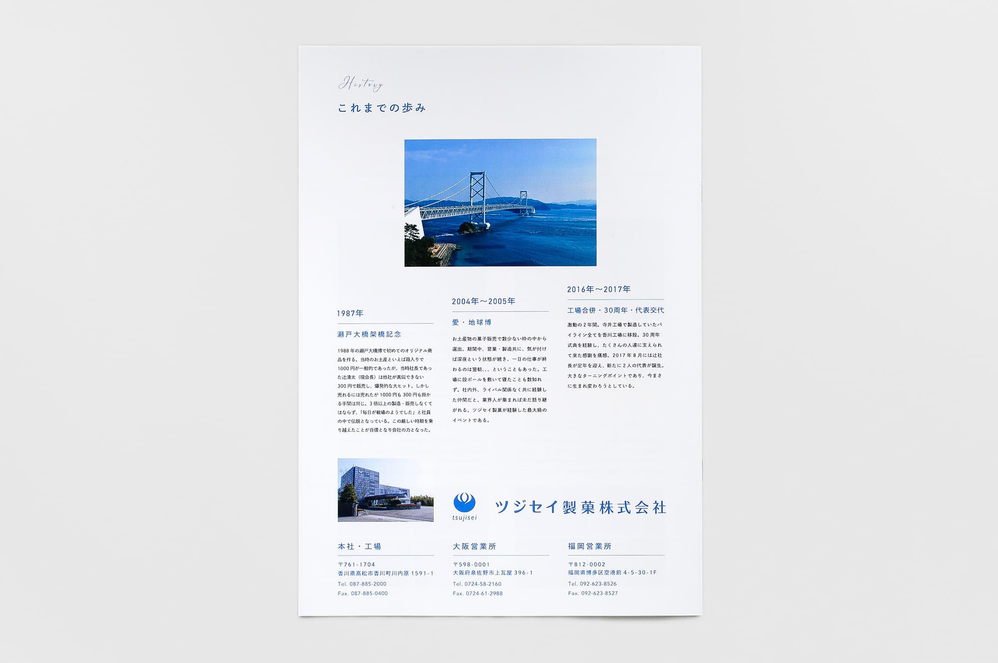 1986年の創業以来、毎年多くのお土産を生み出しているツジセイ製菓株式会社様のパンフレット。