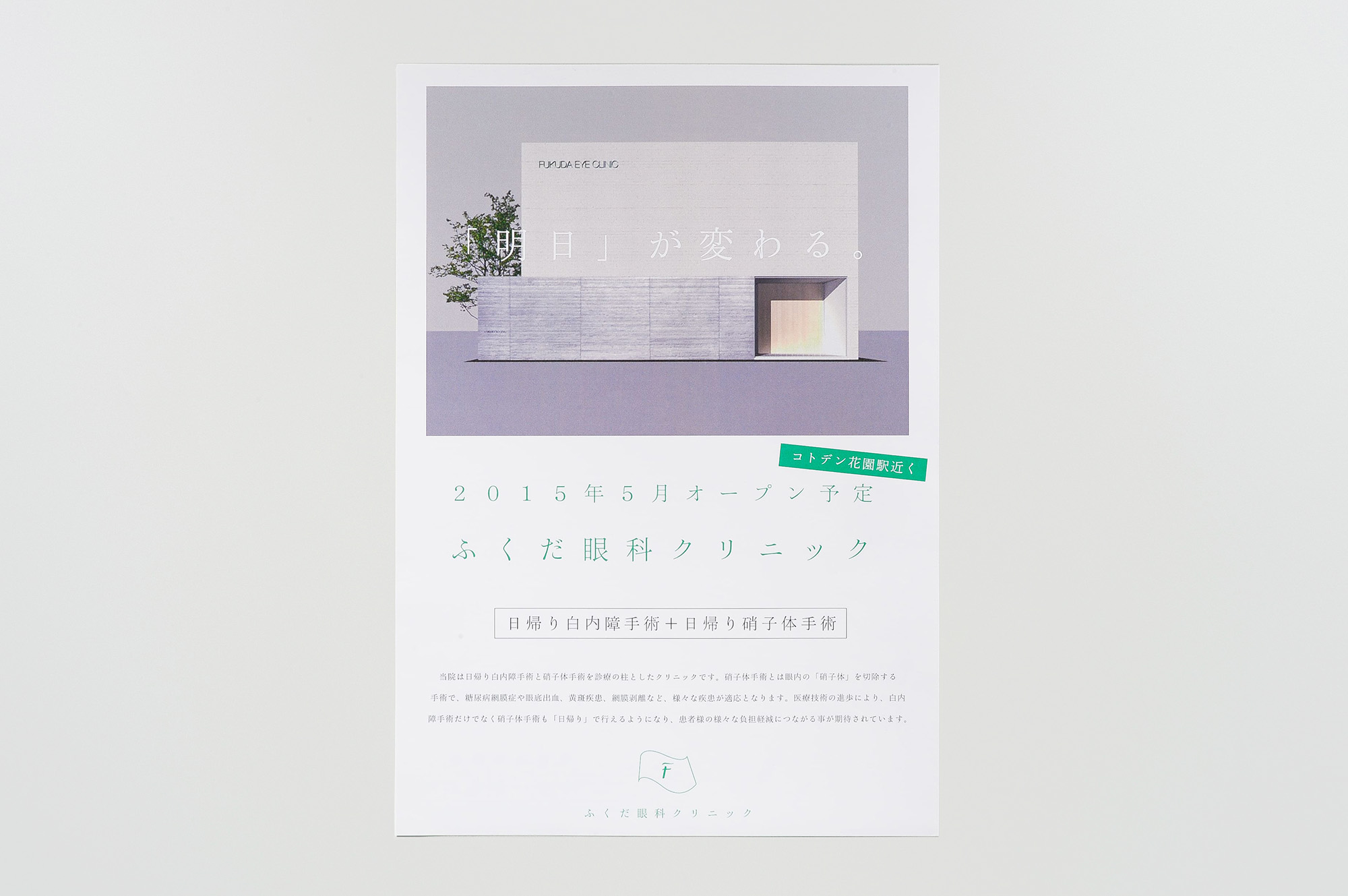 年間700例以上を執刀されているふくだ眼科クリニック様の開院告知フライヤー。