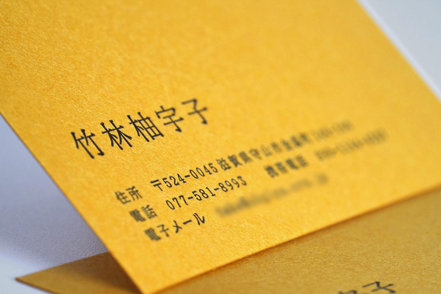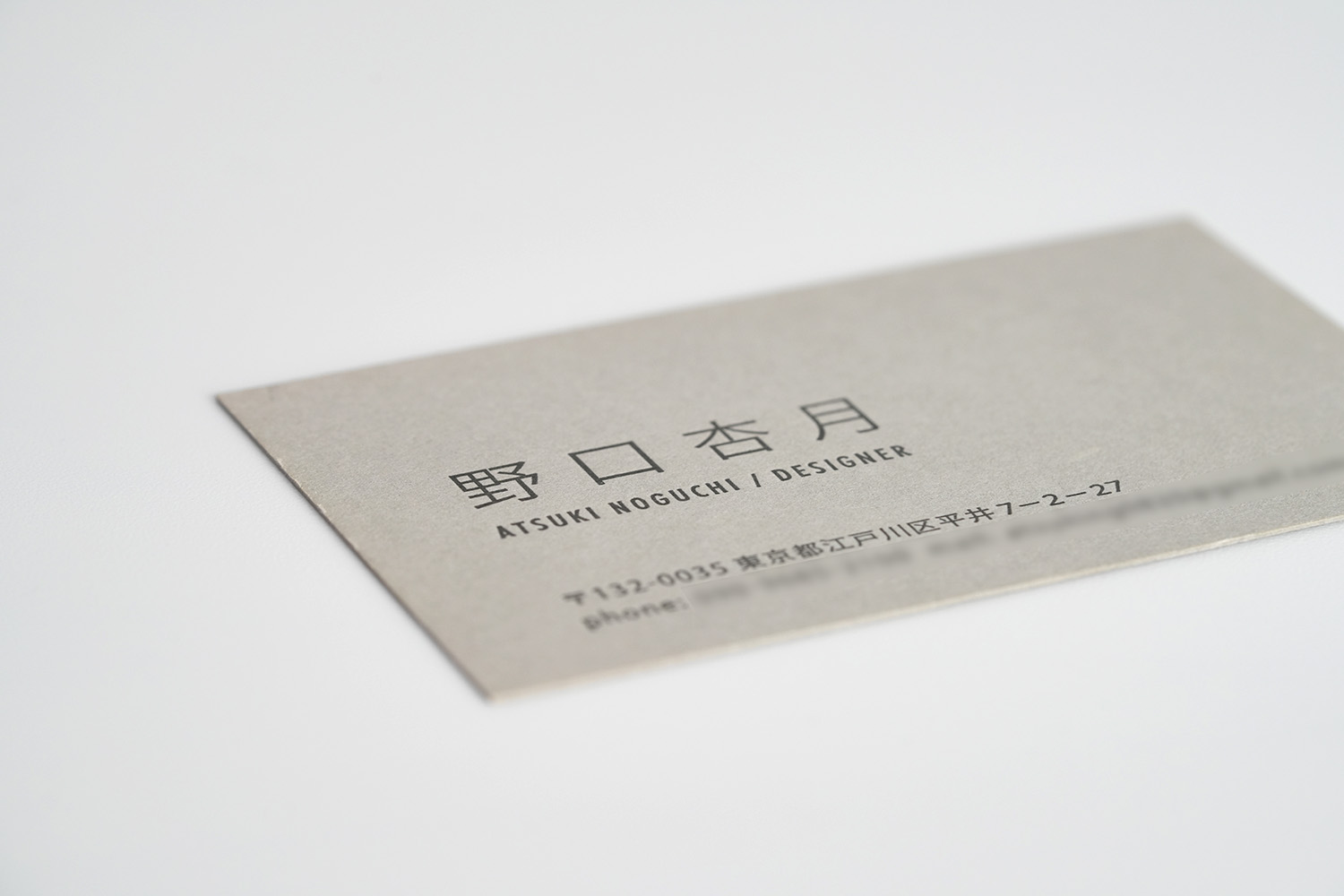 クラフト感たっぷりの、個性が際立つ名刺。もともとのグレーやマスタードの風合いが、素朴で味わい深い印象を与えます。手に取ると、紙の温かみや質感がしっかりと伝わり、愛着が湧く一枚です。イラストレーターや工務店、農園、自然派レストランなど、ナチュラルな世界観を大切にする方々に特に好まれています。紙そのものの表情が、ブランドのこだわりやストーリーをさりげなく伝え、通常印刷でも雰囲気は抜群ですが、活版印刷を施すことで、さらに温もりと奥行きが増し、視覚的にも触感的にも、シンプルながらも存在感のある名刺に。