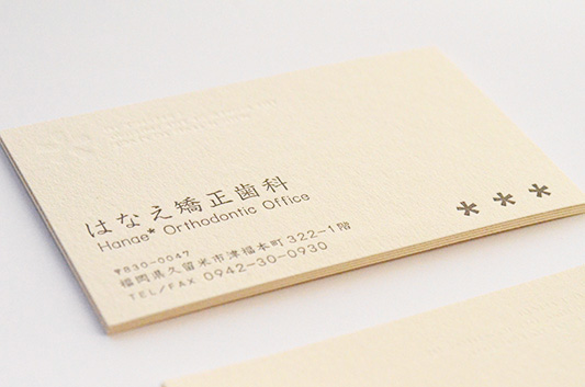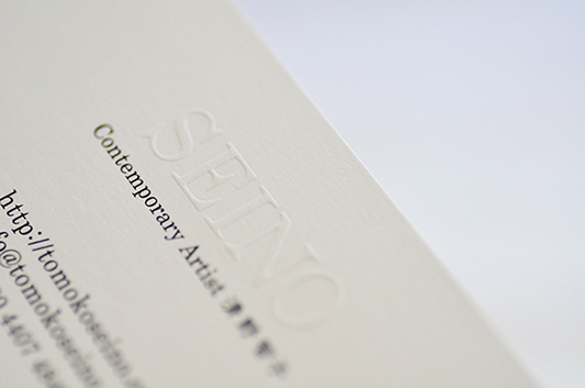 エンボス+活版の特殊加工をふんだんに使ったオーダー名刺。エンボス部分が透明ですのでバランスの良い名刺です。