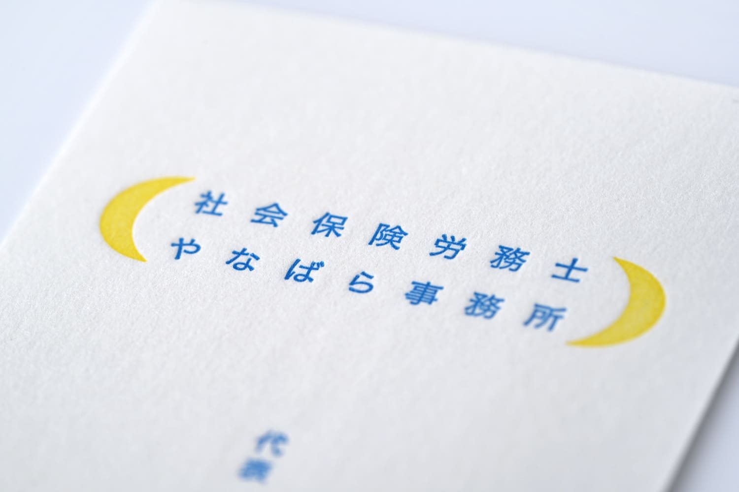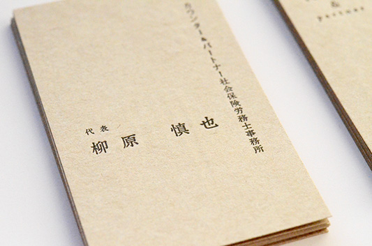社会保険労務士のお名刺。落ち着いた色あいと心のこもったメッセージによって、安心感や親しみやすさを演出しました。