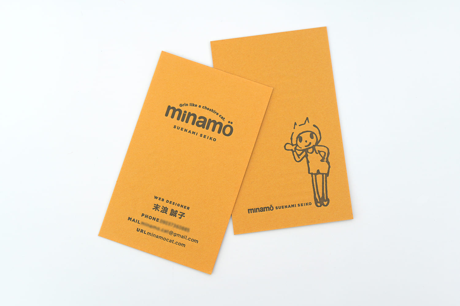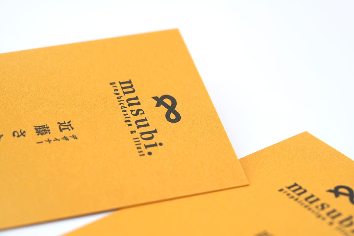 マスタードカラーとスミ色の美しいコントラスト。ふっくらとした質感からは、愛らしさが感じられるお名刺です。