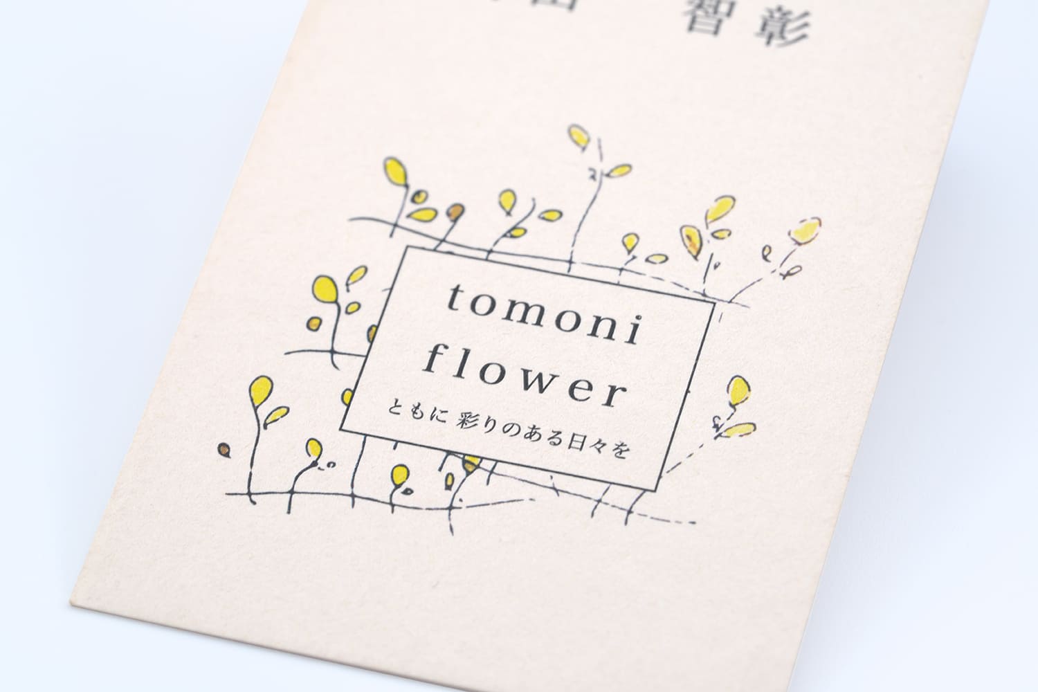 大阪の園芸卸業者様。イラストが映えるおしゃれオーダー名刺。贅沢に両面を使い、美しい空気感を演出しています。この水彩のブルーが綺麗に印刷できる紙質を選んでいます。