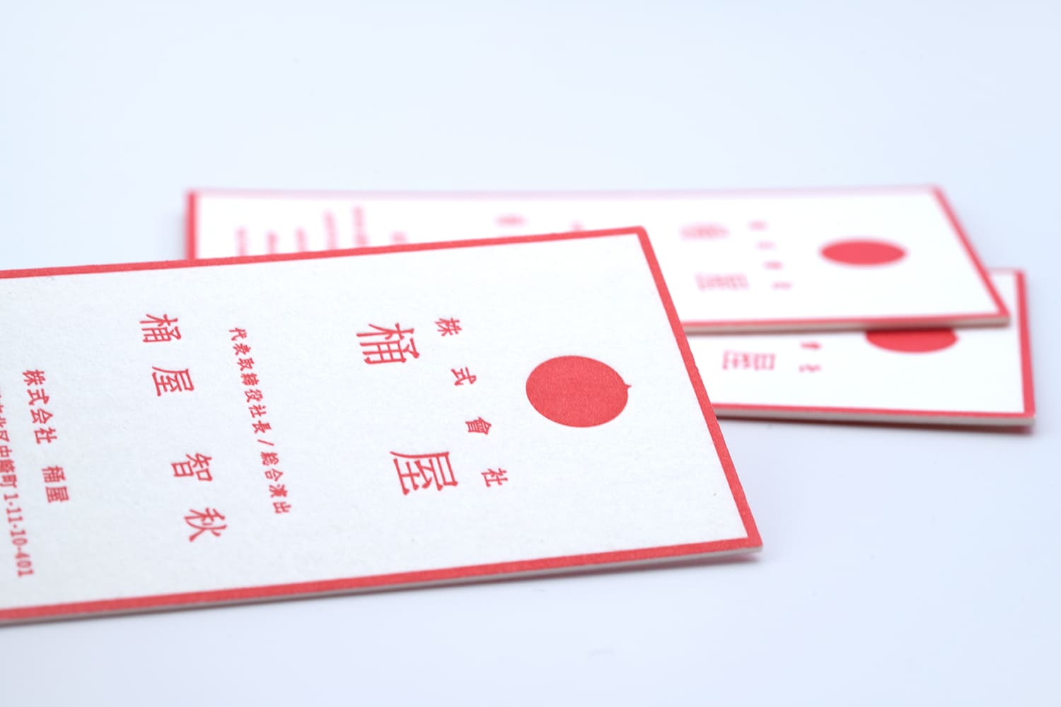 紅白が鮮やかなお名刺。ブランドカラーを全面に押し出しました。お名刺は、その人や会社様を表す「顔」とも言えます。多くを語らずとも、その姿形でコンセプトが伝わるお名刺をご提案いたします。