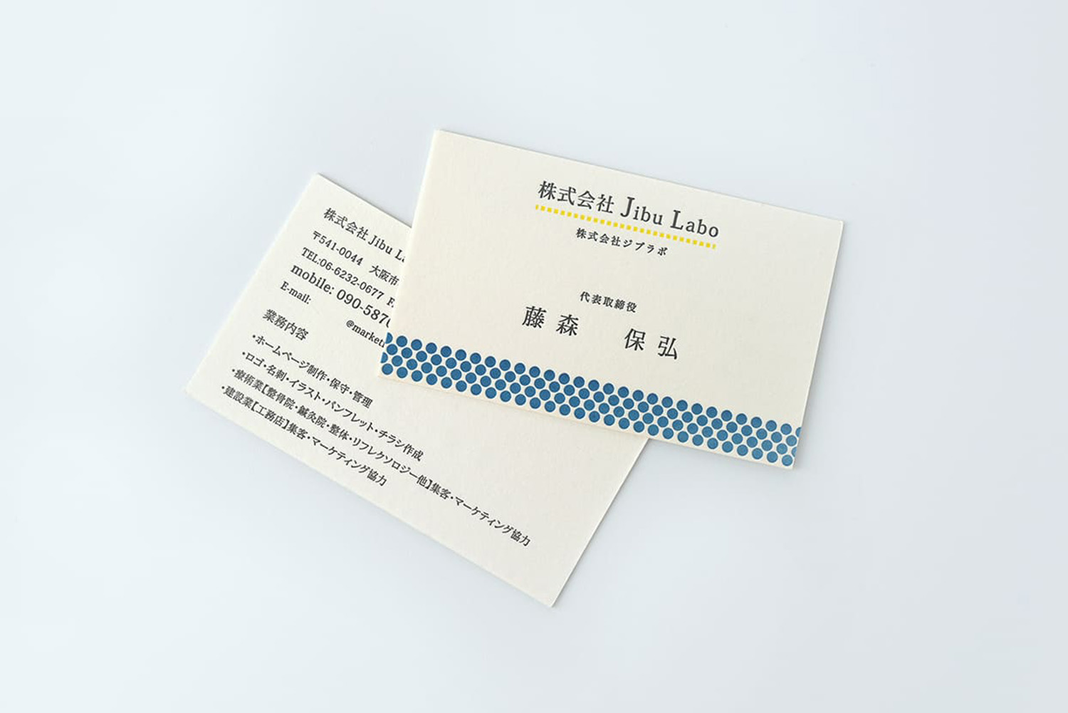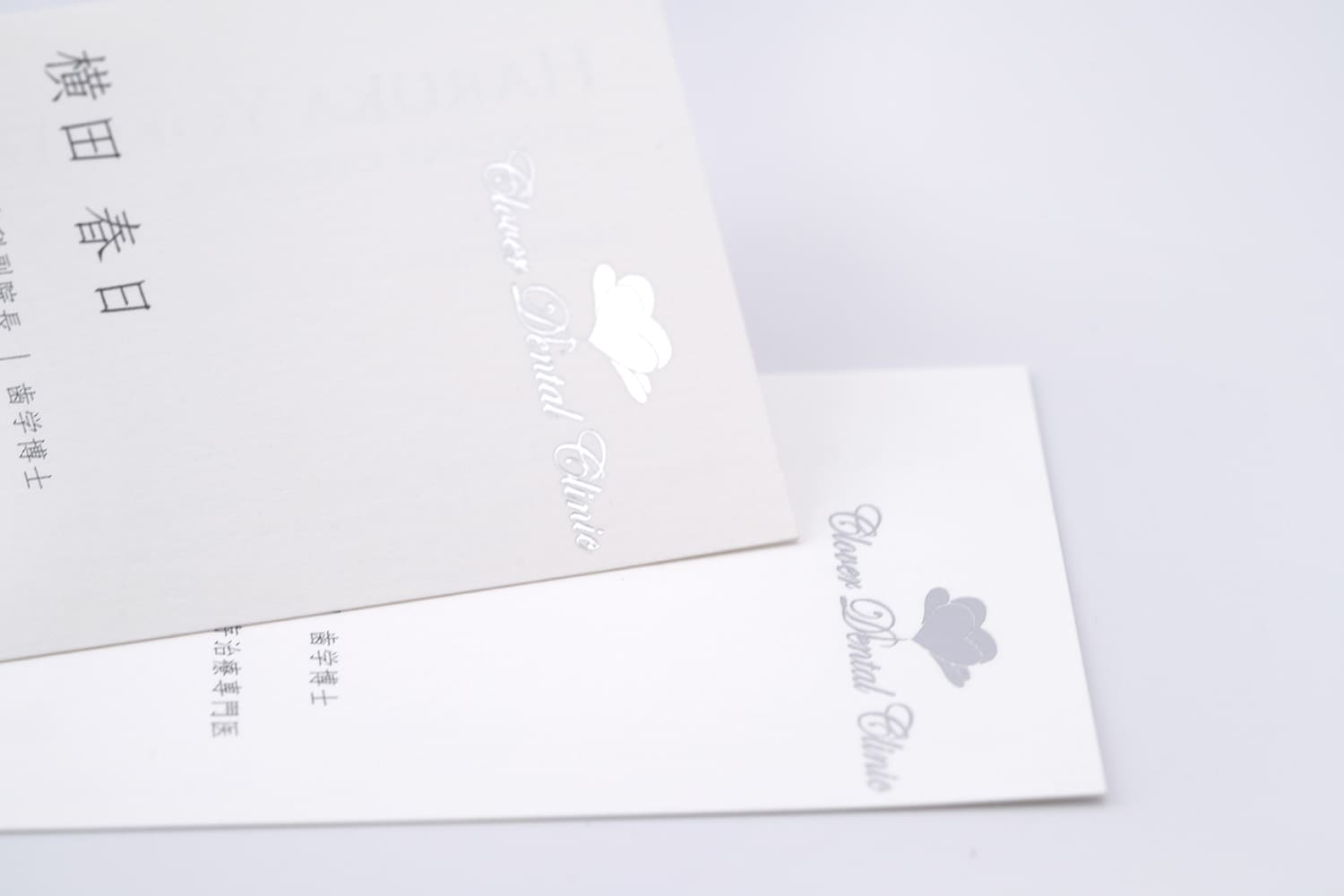 ロゴ文字部分を印字なしでエンボスで加工することにより、より洗練されたイメージが伝わるように名刺を作成しました。