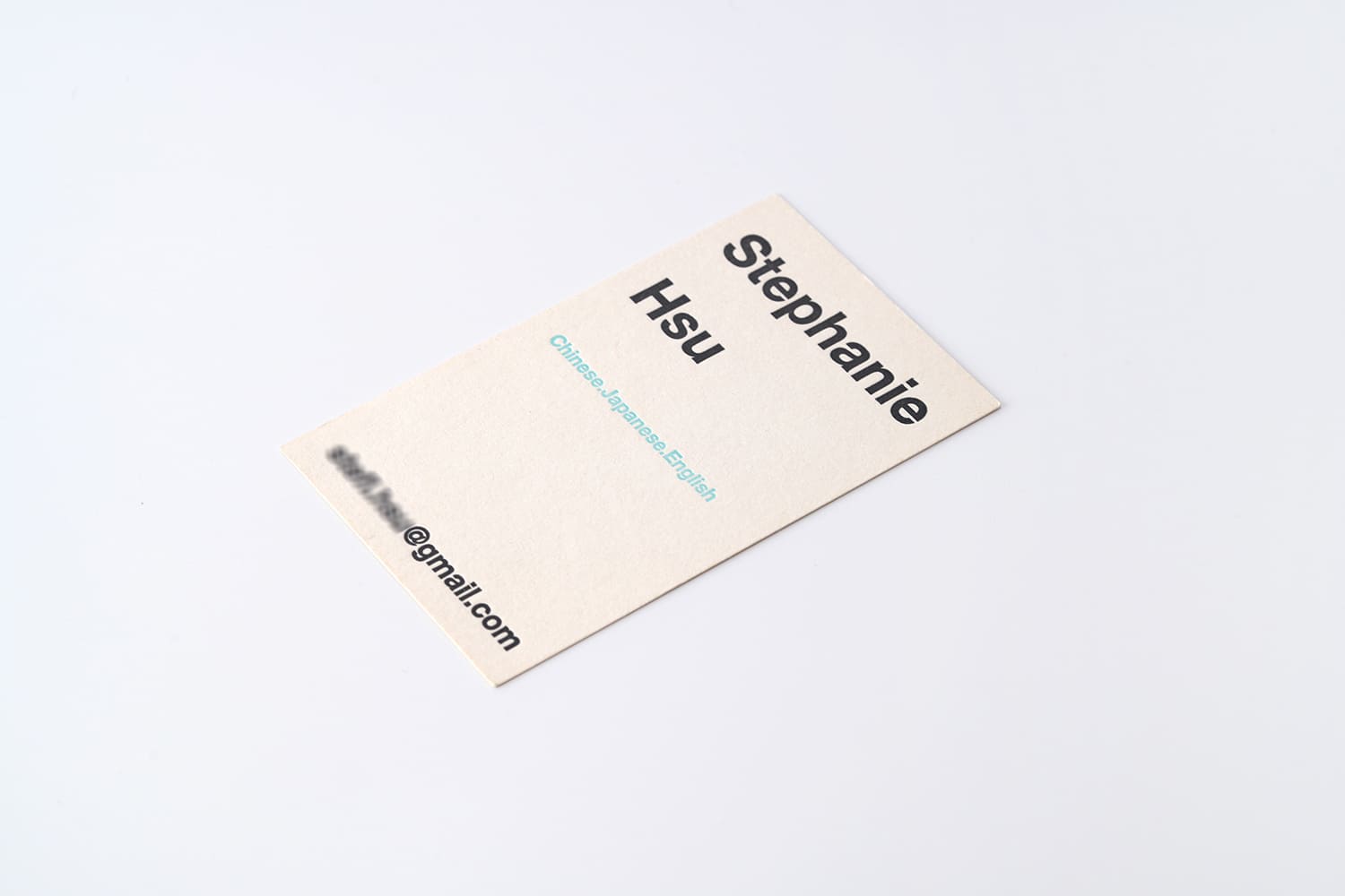アラベールナチュラルのアイボリーと明朝が絶妙な、雰囲気のあるオーダー名刺。ミニマルなデザインと活版印刷の相性は抜群です。