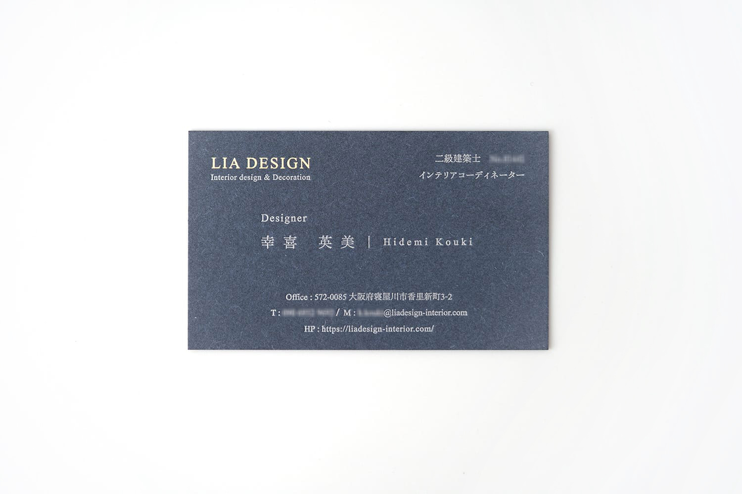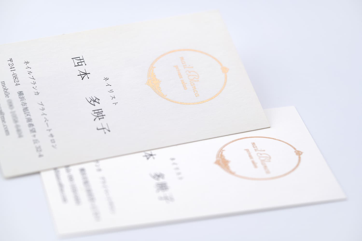 オーナー様のお名刺は全面金箔押し。小口もゴールドに染め上げることで、特別な高級感の際立つお名刺となりました。