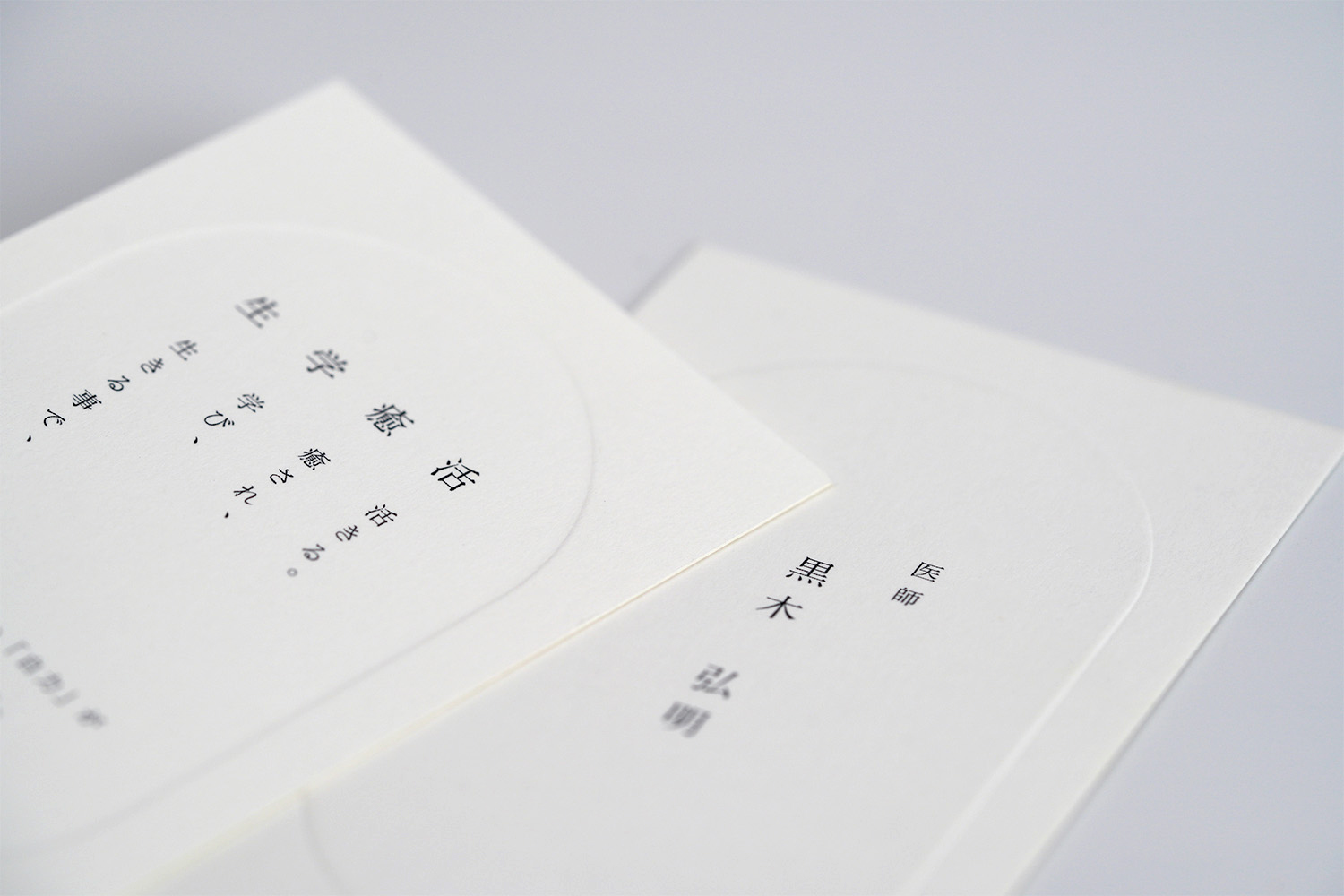 深い心の中が浮き出ているようなオーバル型のエンボスが只々美しく、優しく、医師黒木様その人を現すようなお名刺です。
