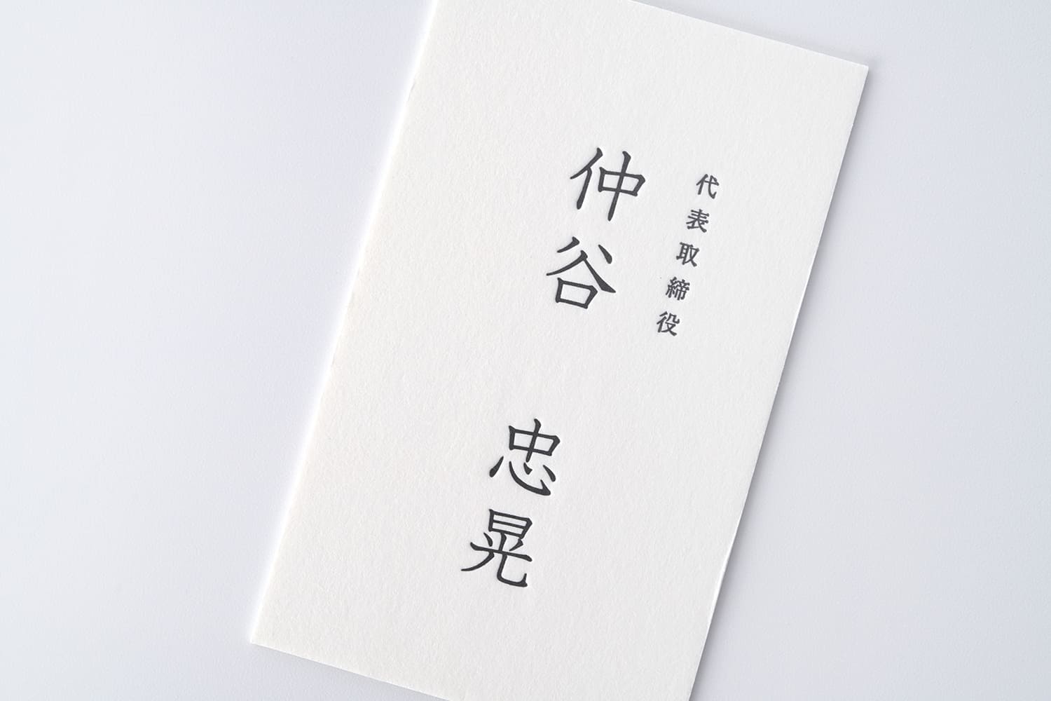 真っ白なクッション紙に墨1色活版の超シンプルな名刺。シンプルゆえの洗練された、価値の伝わる王道。