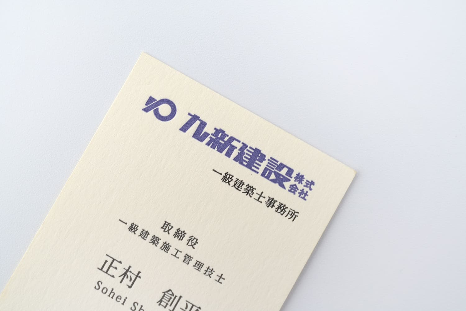 シルバーの箔押しが煌めく建設業者様のお名刺。良いデザインのお名刺を所有することで、会社への愛着やプライドが生まれます。