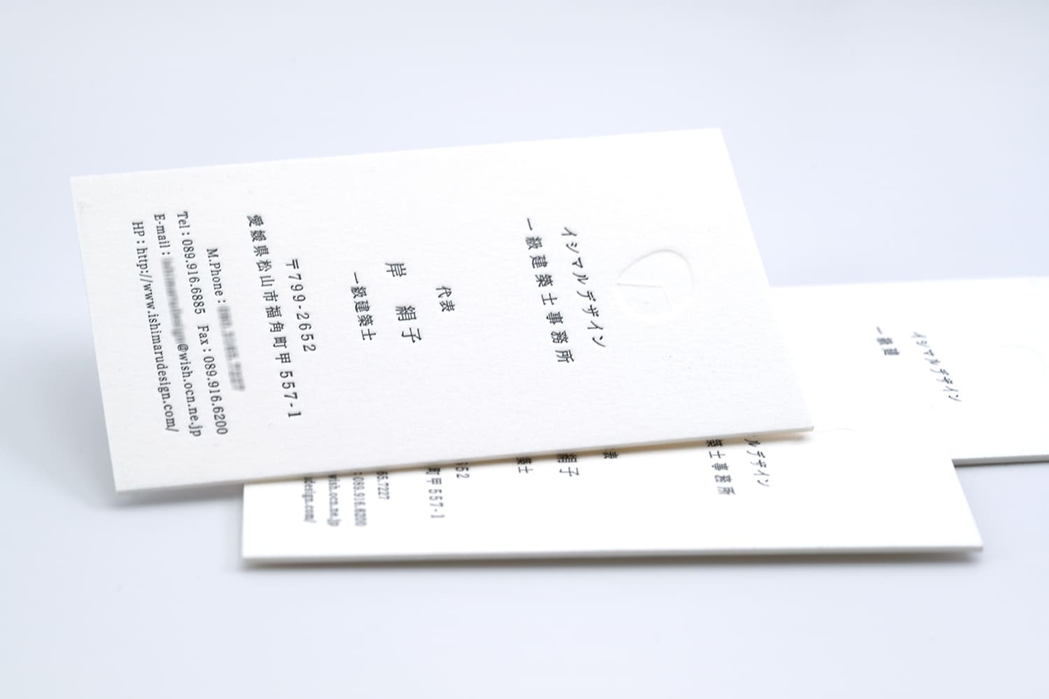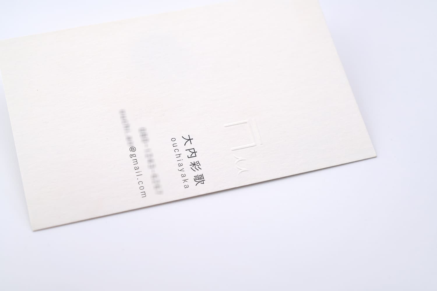 ハーフエアの柔らかみと文字の凹凸が美しい名刺です。