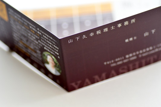 多量の情報も、二つ折り加工ならすっきり収まります。さらにシンプルにレイアウトすることで、より可読性の高いお名刺に仕上がりました。