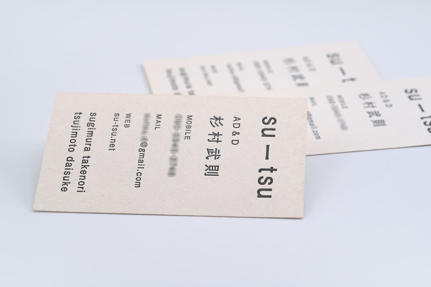 淡い生成のバフン紙に活版印刷を施したこちらのお名刺は、