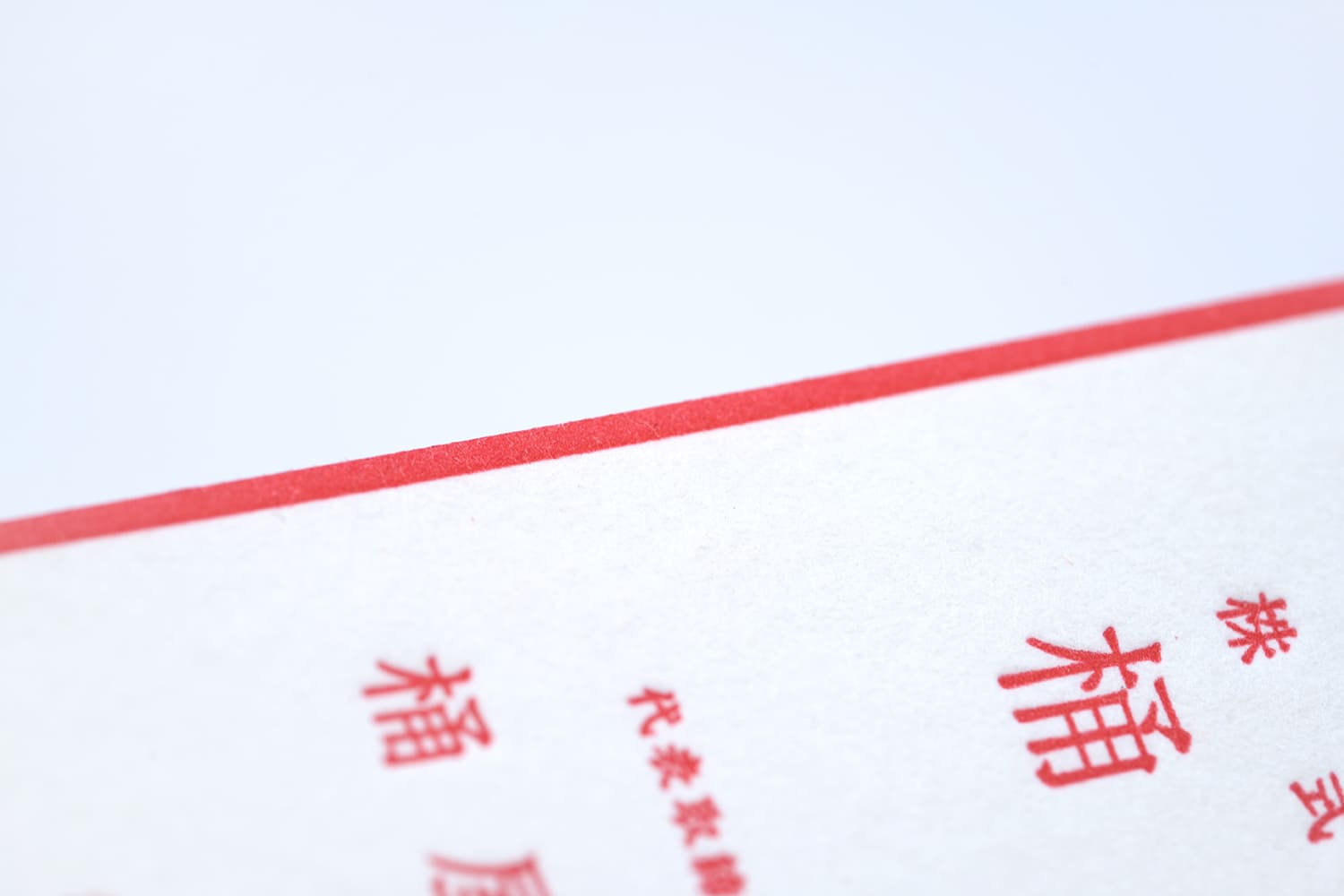 特殊印刷加工をふんだんに使った和を感じる事の出来る富裕層名刺。通常の名刺サイズではなく、どこにもないオリジナルのサイズ。縁の活版印刷はかなり高い技術力が必要です。しかしこのデザインが1つのアクセントとなっています。ただの成金主義ではない。こだわりと風格を伴った富裕層が持つべき一枚。